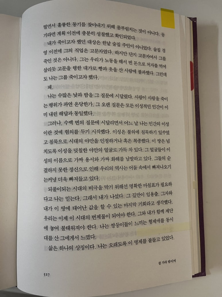 하지만 정말 살인은 잘못이 아닌 걸까? 아니다. 안중근 의사처럼 전쟁 중의 정당한 행위가 아니었고, 이건 분명 민간인을 죽인 일이었다. 물론 그 사람이 수많은 사람을 고문하고, 속이고, 끔찍한 짓을 저질렀던 건 사실이다. 그렇다고 해도, 사람을 죽이는 일은 그 누구에게도 허락되어선 안 된다.