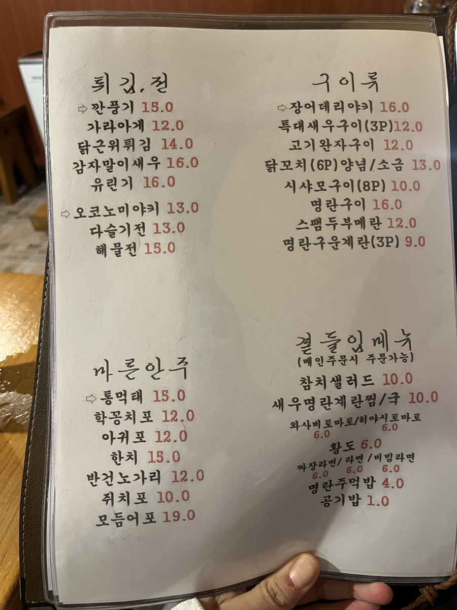 저희는 꼬치, 문어숙회, 오코노미야키, 소고기 버섯전골 등등 먹었는데요. 이 집은 거의 다 평타 이상하니 그날 당기는 음식으로 먹으면 될 것 같아요! 저는 꼬치를 추천해요!