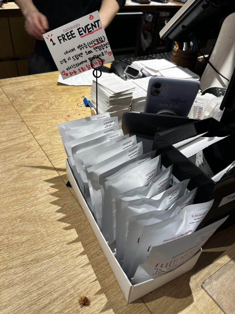 네이버 영수증 리뷰를 작성하시면 드립 백을 하나 주는데요.