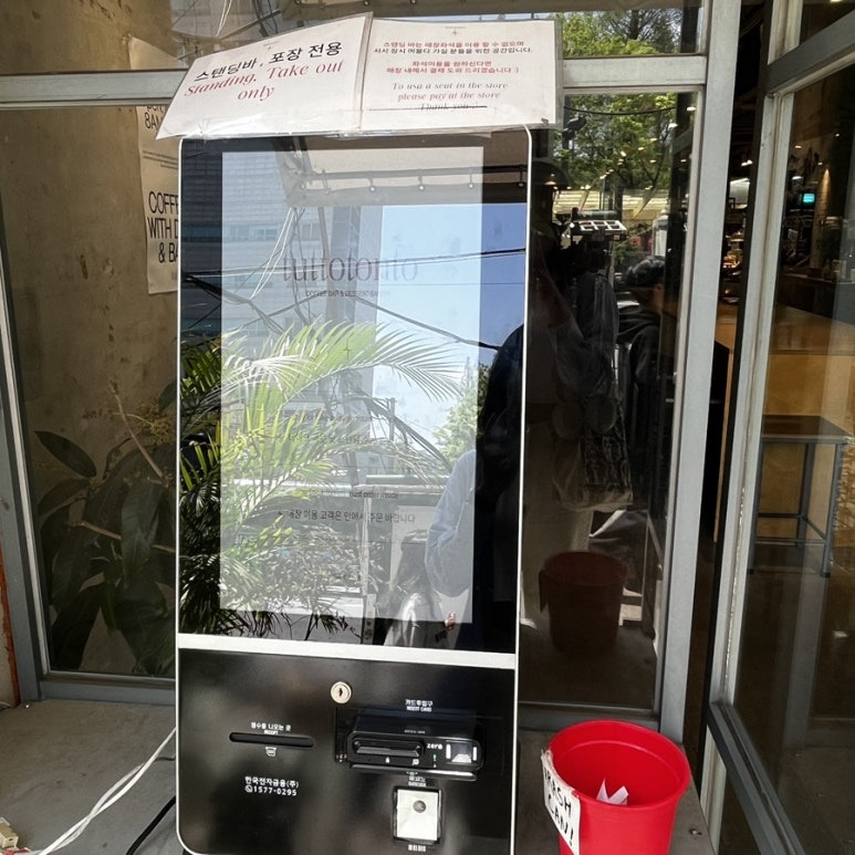 그리고 매장 입구에 이렇게 스탠딩 바와 포장 전용 키오스크가 있는데요.