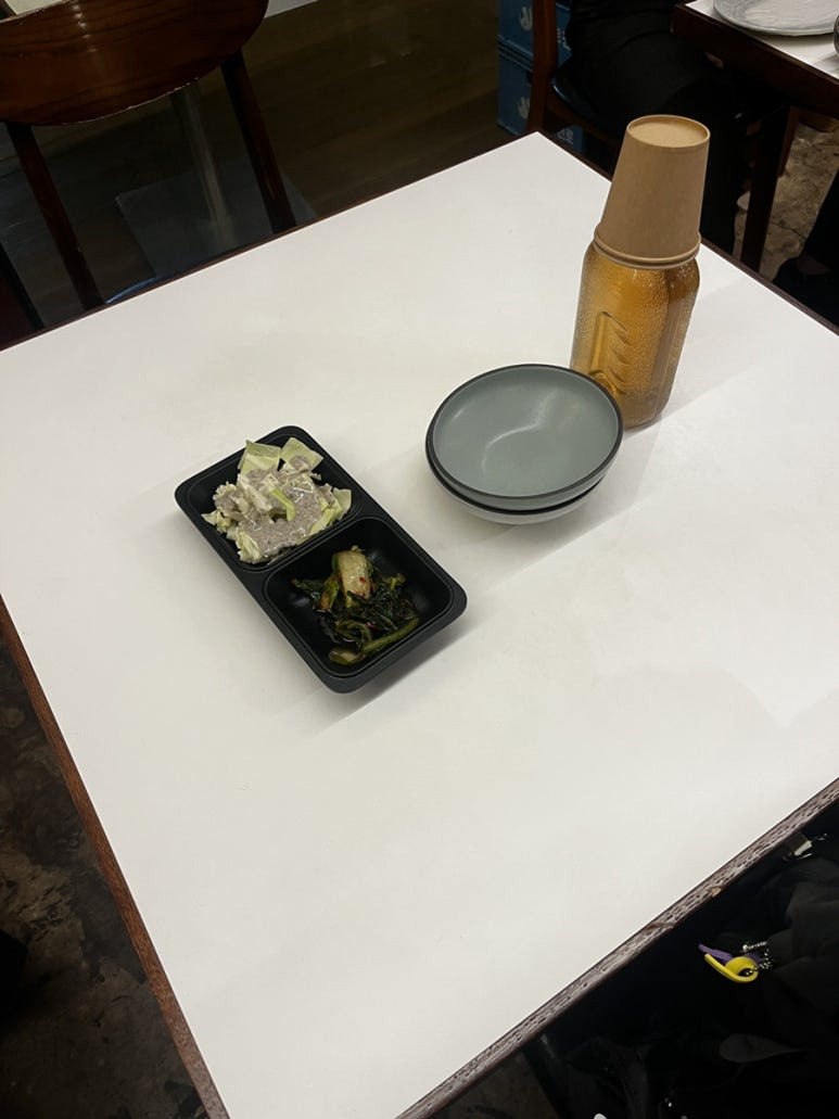 전 그냥 물 보아 이렇게 끓인 물 좋아하는데~ 여기는 끓인 물을 델몬트 미니병에 담아주네요?ㅎㅎ