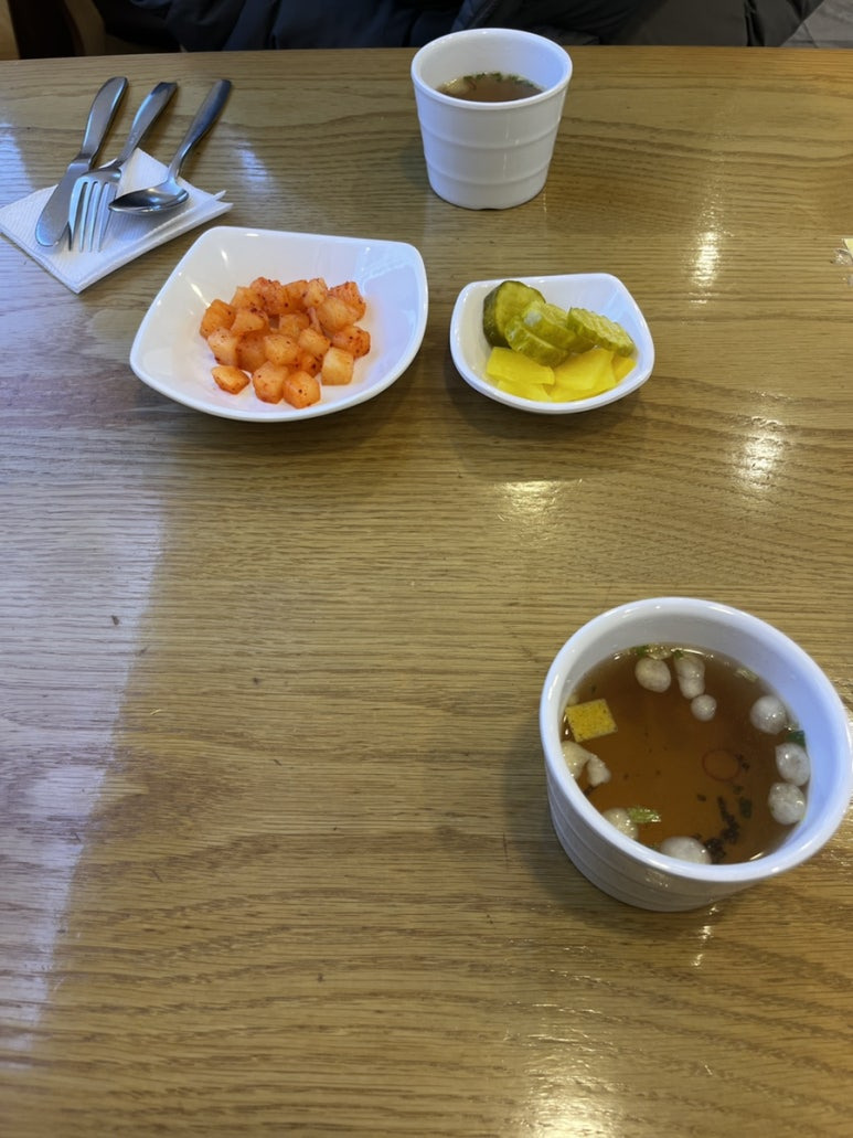 저희는 이렇게 단무지, 깍두기, 우동국물(?) 이렇게 가지고 왔습니다.