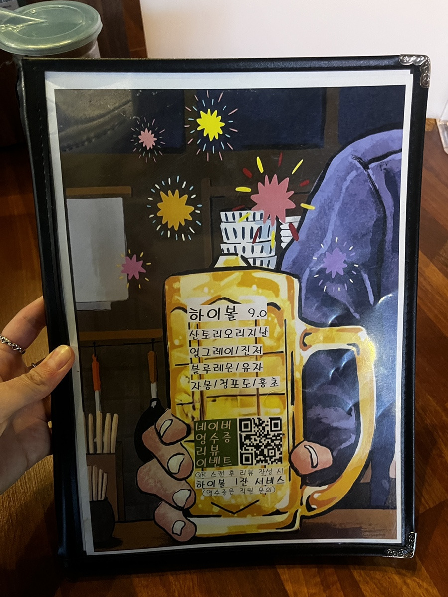 카메라 켜서 QR 촬영하시고 네이버 영수증 리뷰 이벤트 참여하시면 하이볼 한잔 서비스로 준다고 하네요!