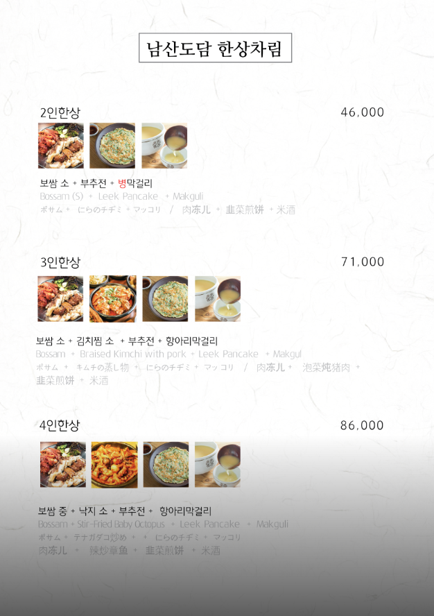 3인한상, 4인한상 등 인원에 맞게 주문할 수 있게 되어있는 거 너무 센스 있지 않나요?ㅎㅎ