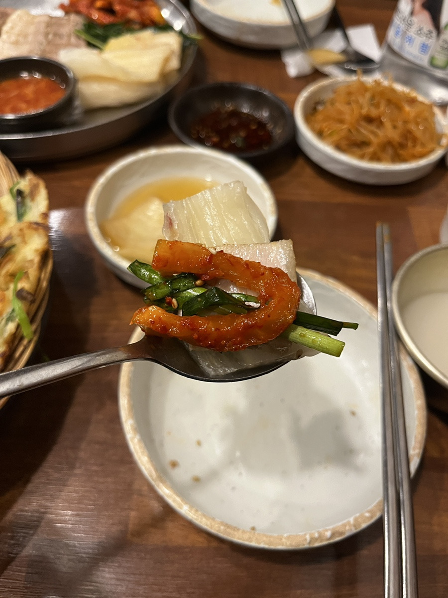 보쌈은 이렇게 같이 나온 김치랑 같이 먹었는데요~