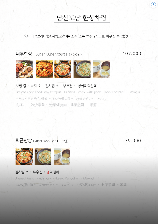 그리고 퇴근한상이라니..ㅋㅋㅋㅋ 저것도 구성이 너무 좋은 거 같아요! 다음에 방문하면 퇴근한 상 먹어야겠어요~ㅎ