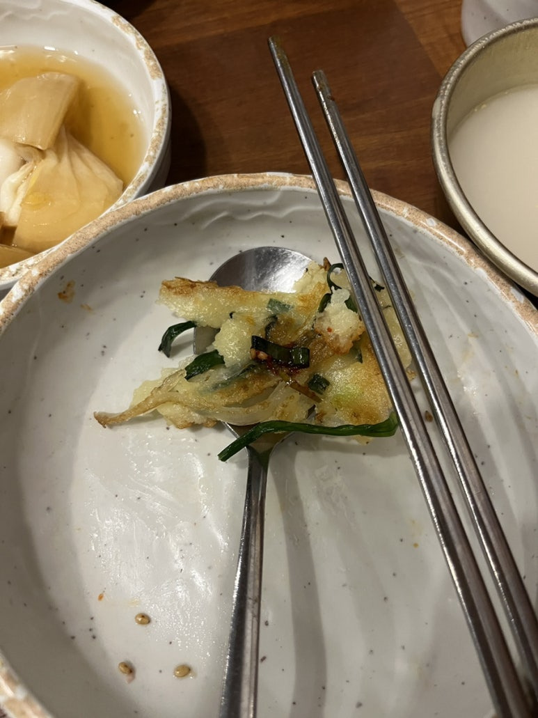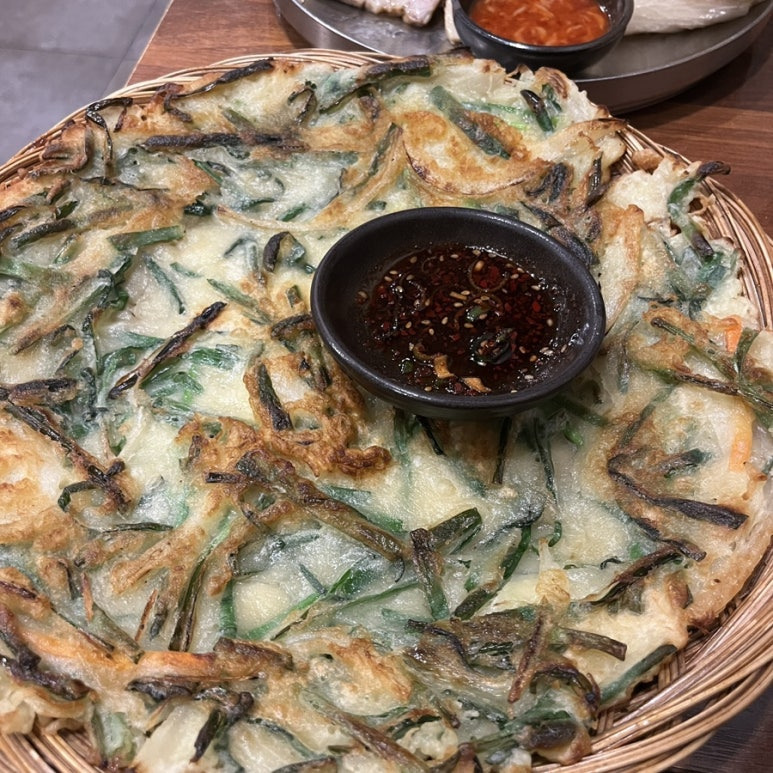 부추전은 겉이 바삭하게 구워져있어서 바삭한 식감을 좋아하시는 분들에게 딱일 것 같아요!