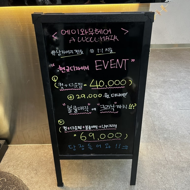 이벤트메뉴는 최소 30% 할인까지 된다고 하니! 네이버로 검색해서 하고 싶은 헤어를 예약해서 저렴하게 결제하시면 너무 좋겠죠? 흐흐
