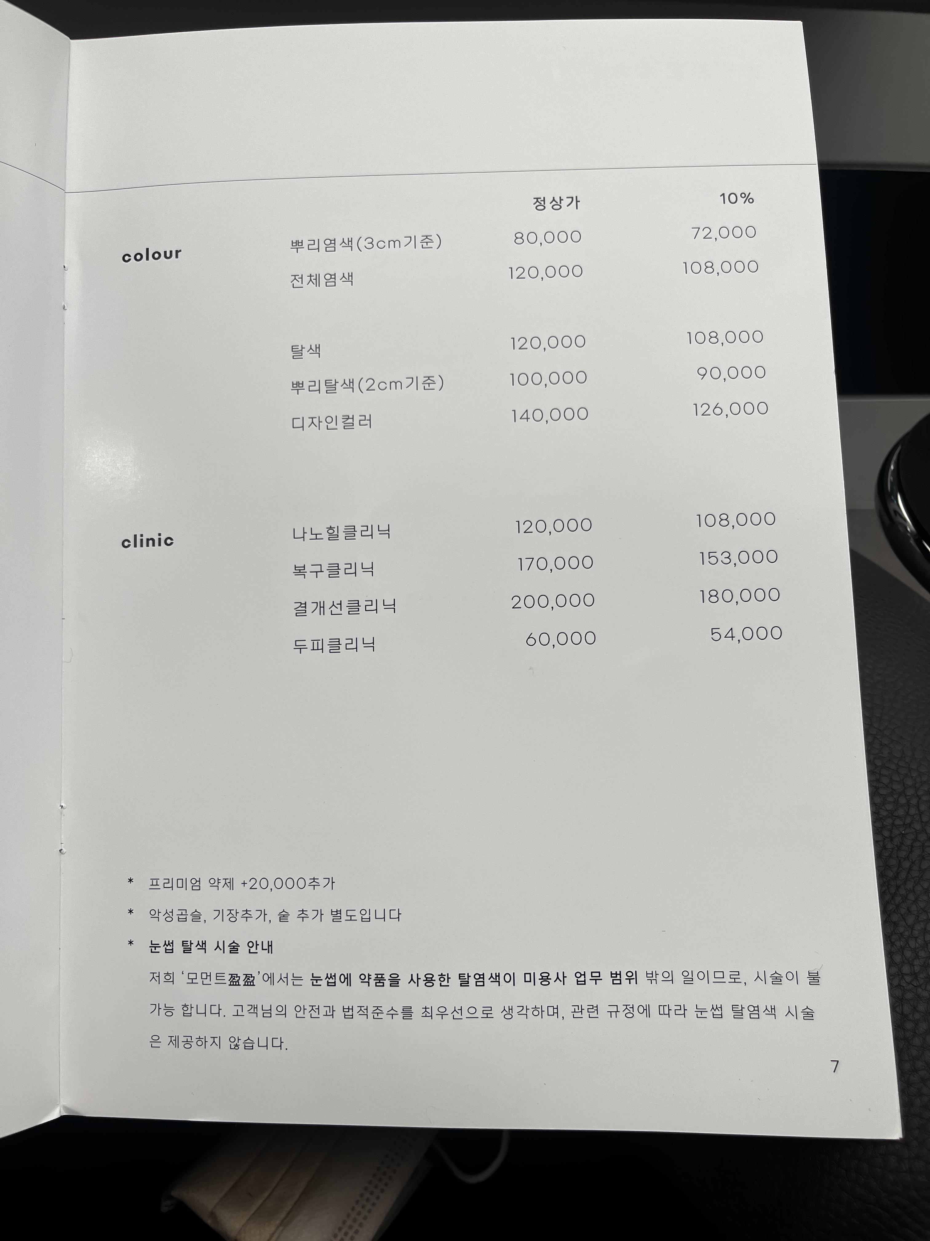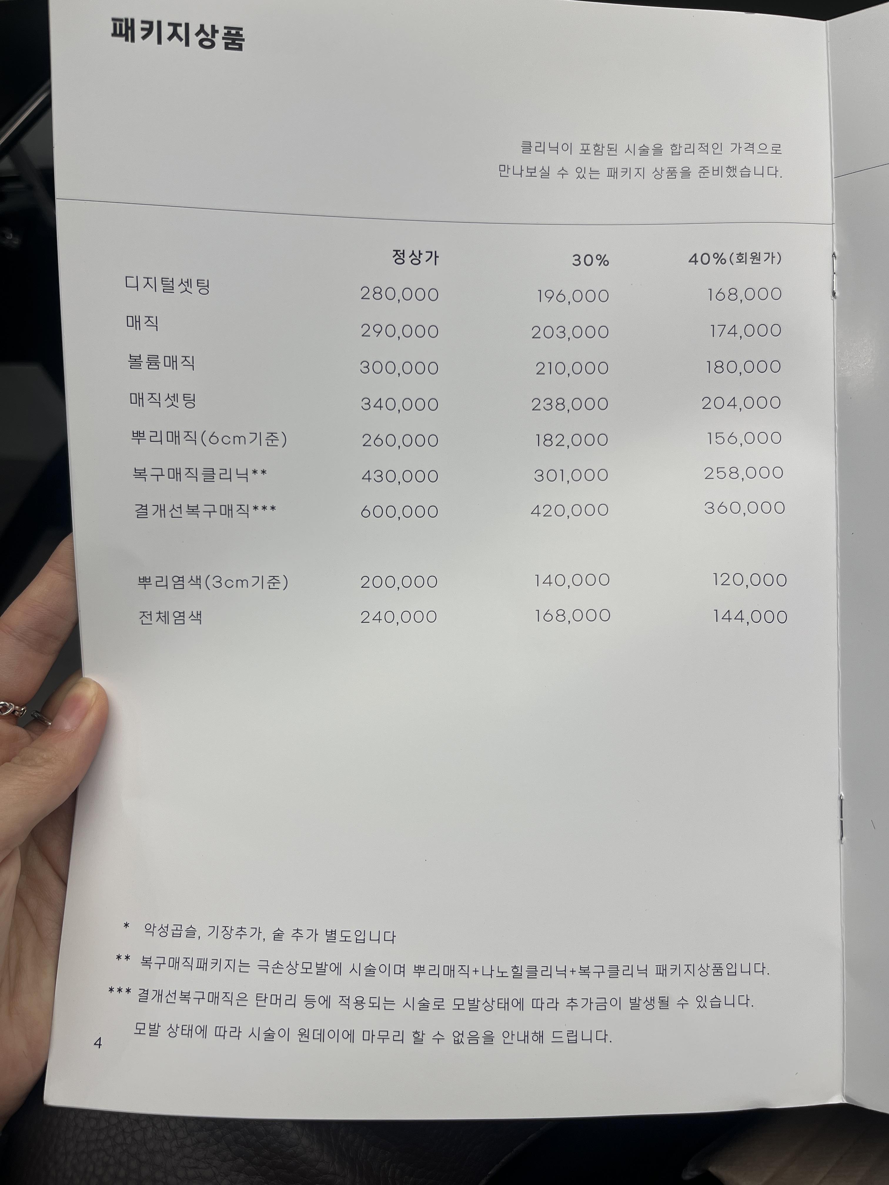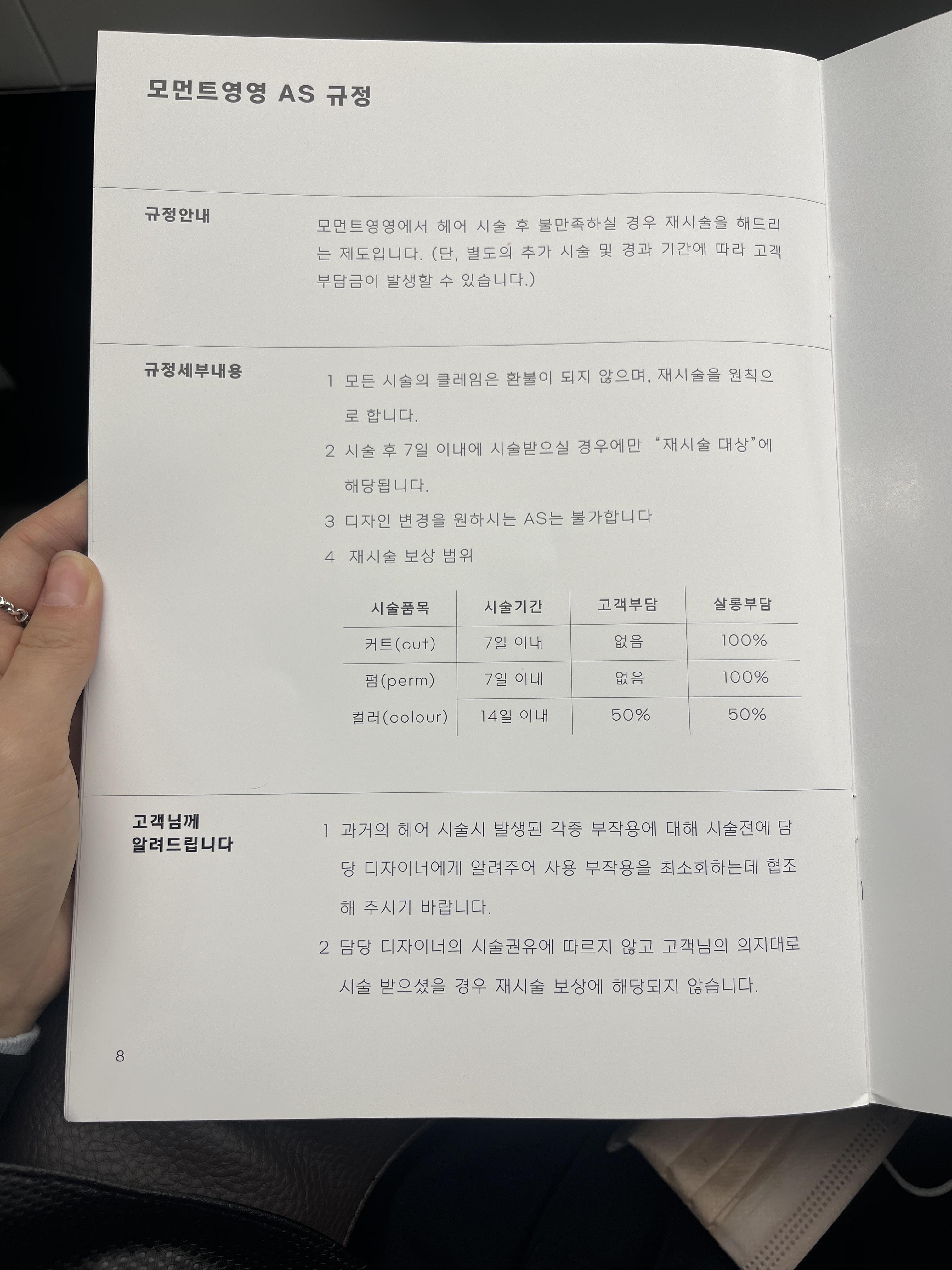 이렇게 머리 시술 외에도 AS규정도 있는데요.