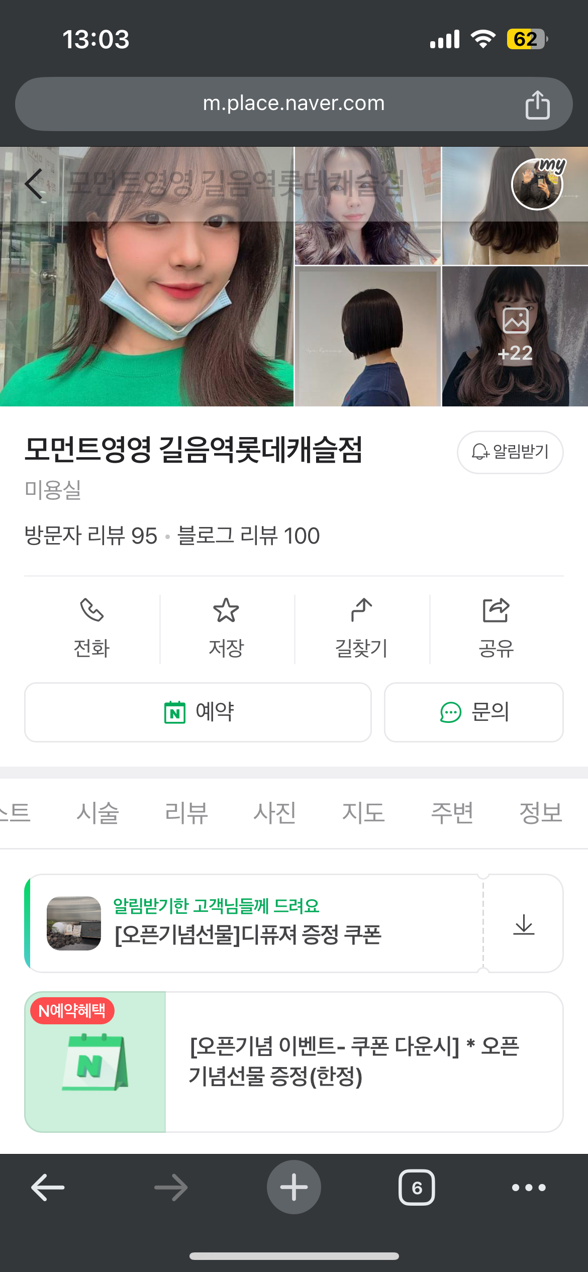 그래서 미용실을 검색하다 길음역에 모먼트영영 롯데캐슬점을 알게 되었는데요.