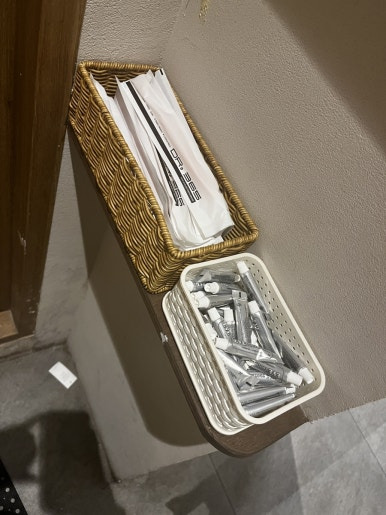 그리고 또 좋았던 점은 이렇게 양치할 수 있게 칫솔이랑 치약이 있는데요.