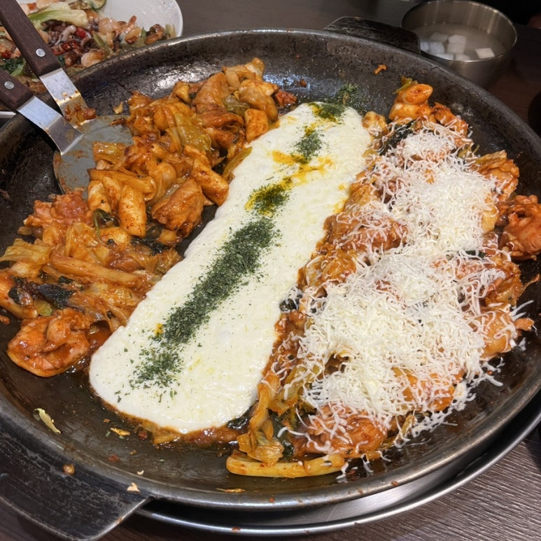 닭갈비는 정말 부드러워서 너무 좋았고 치즈와의 조합이 너무 맛있었습니다.