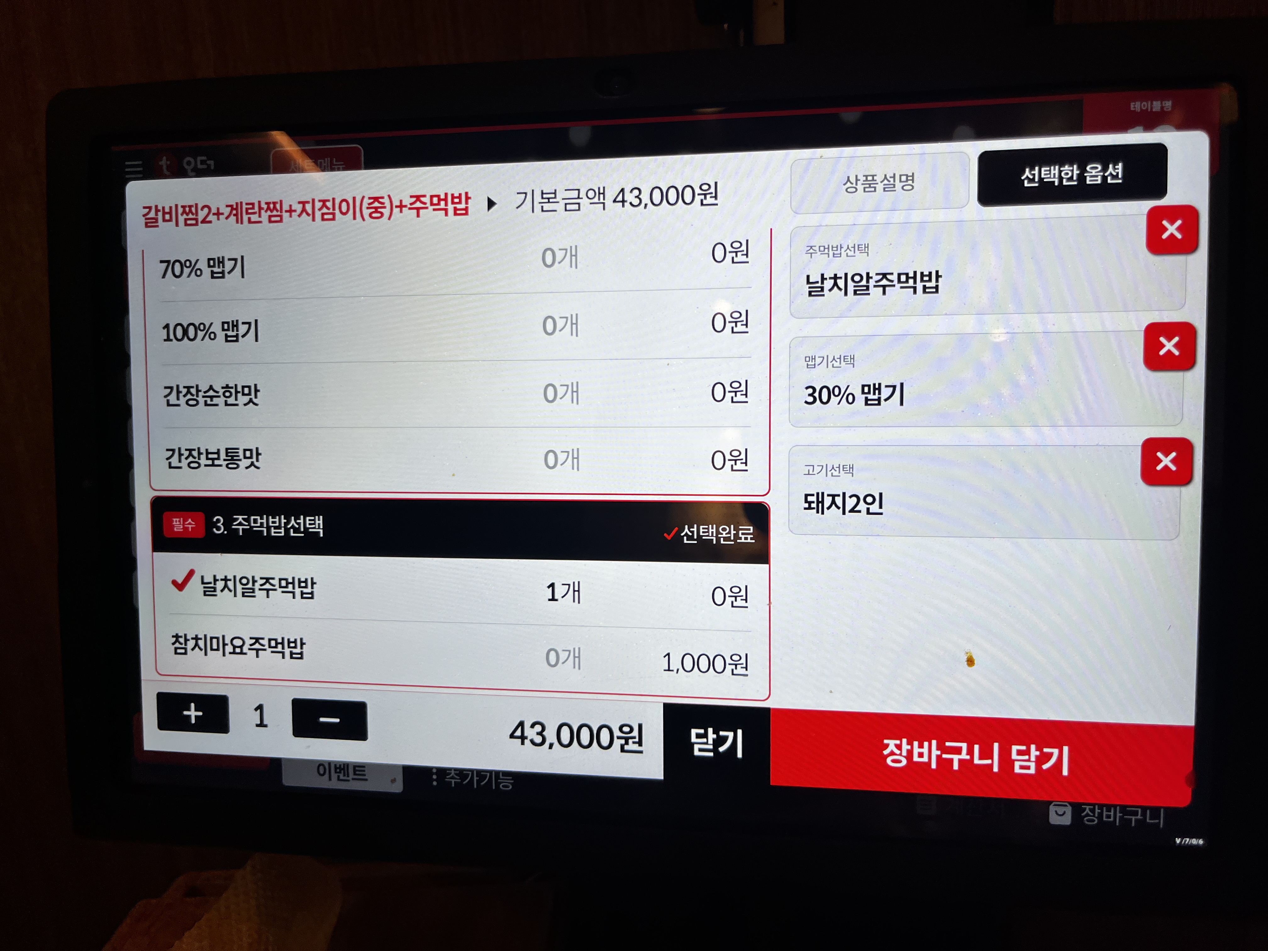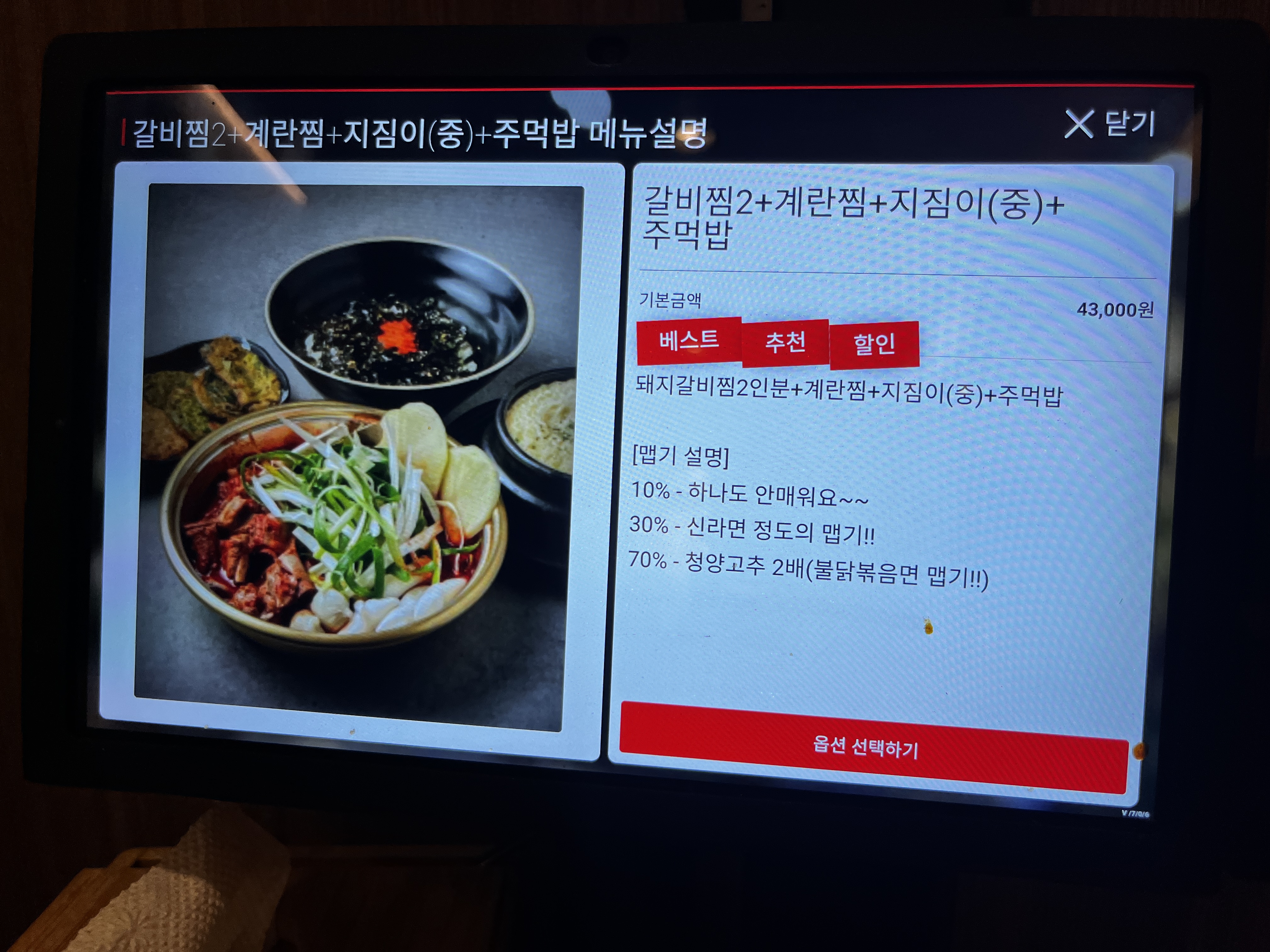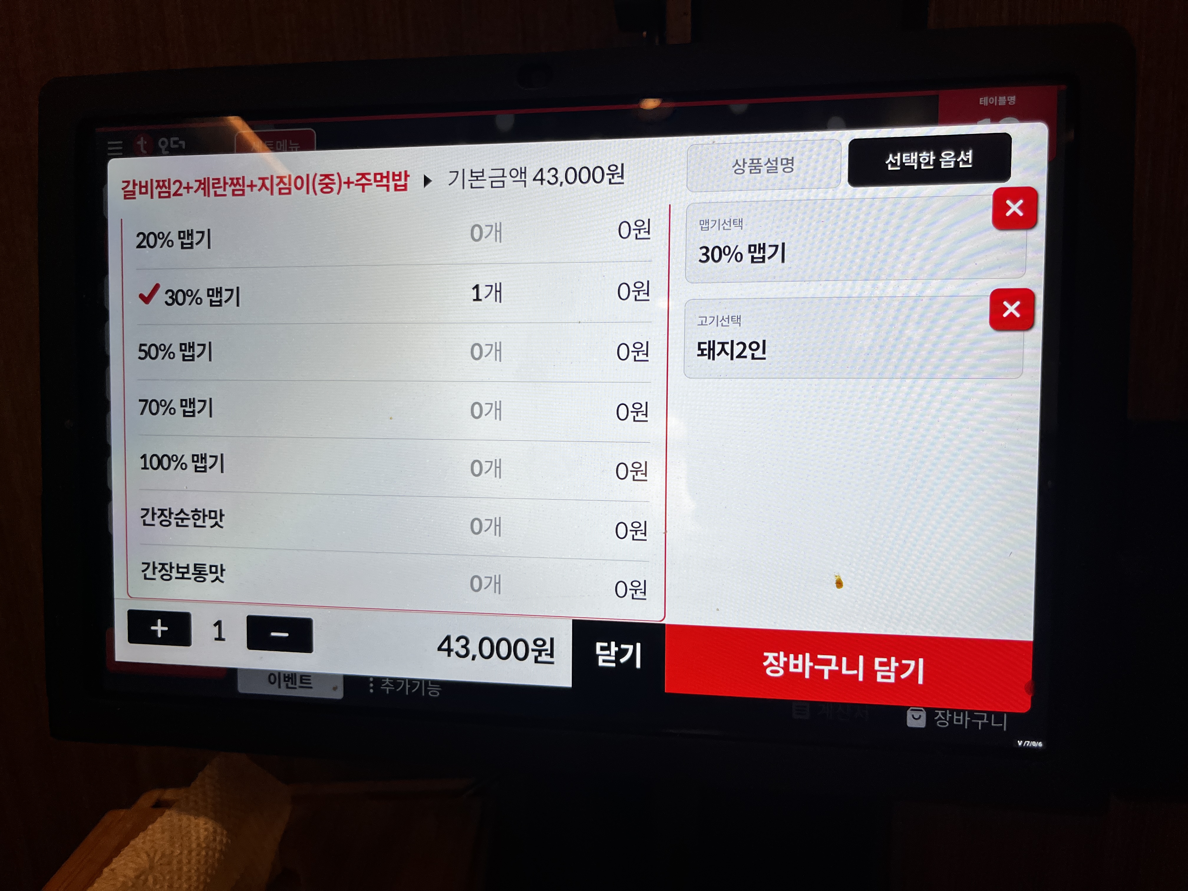 고기를 선택하면 이렇게 맵기 선택이 가능한데요!