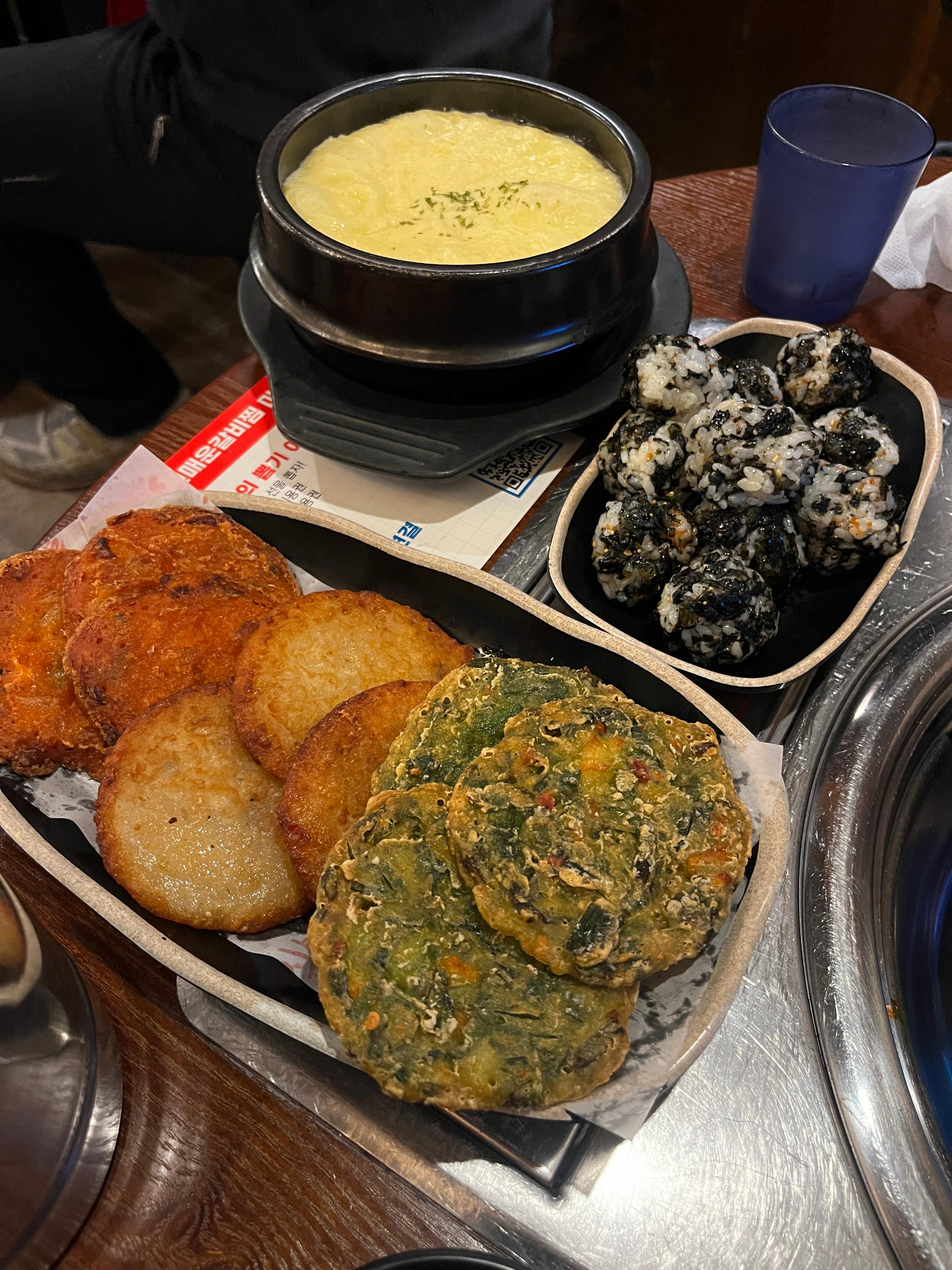 지짐이는 부추, 감자, 김치로 되어있었는데 개인적으로 부추가 너무 맛있었어요!