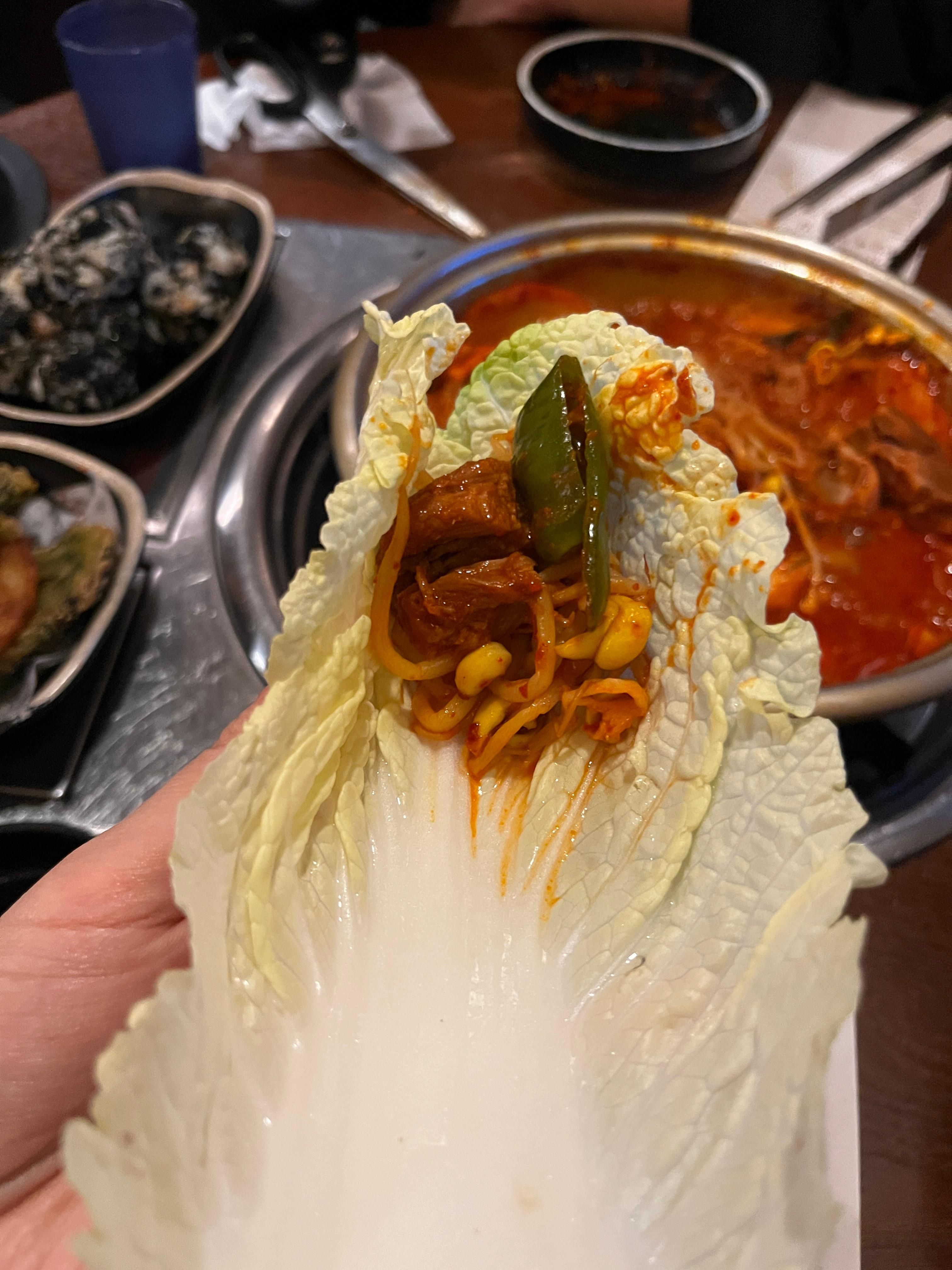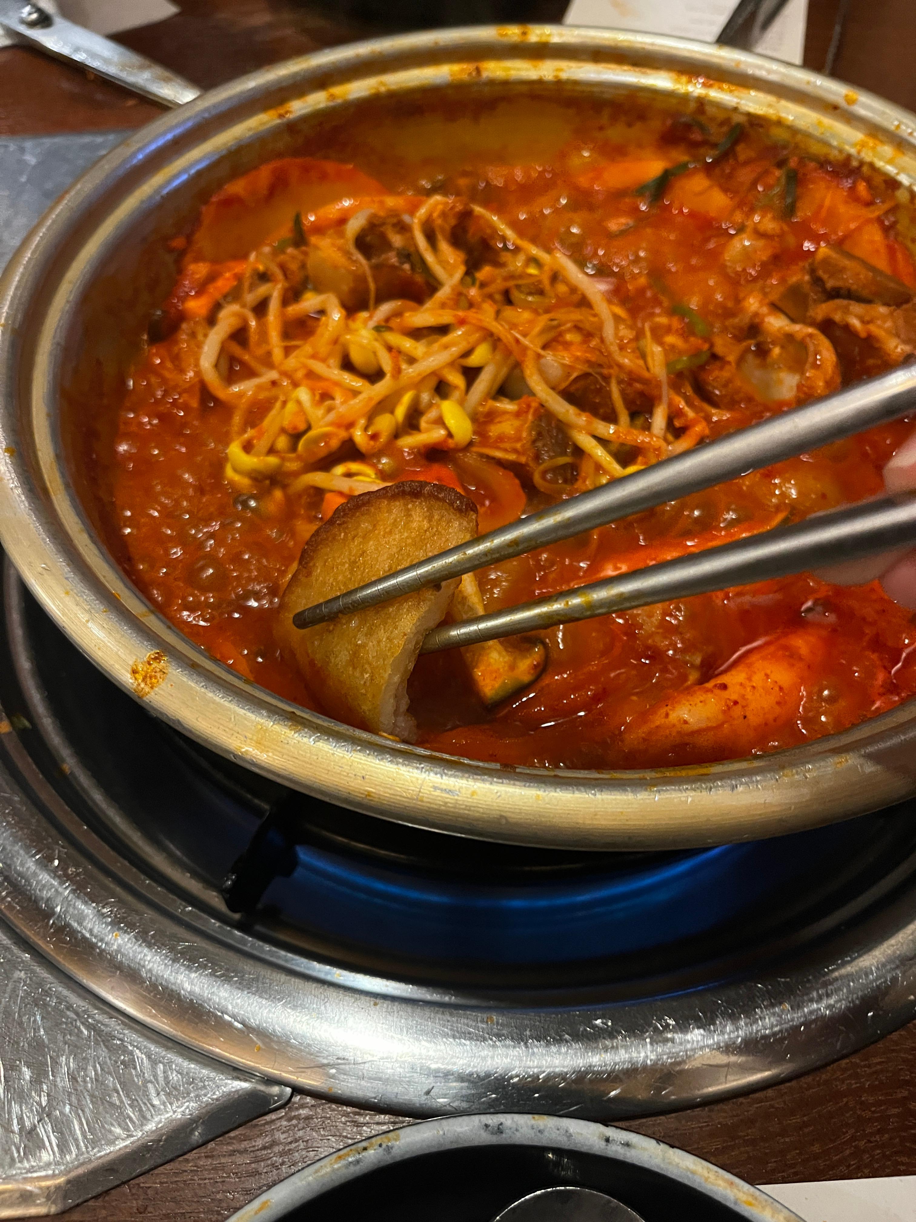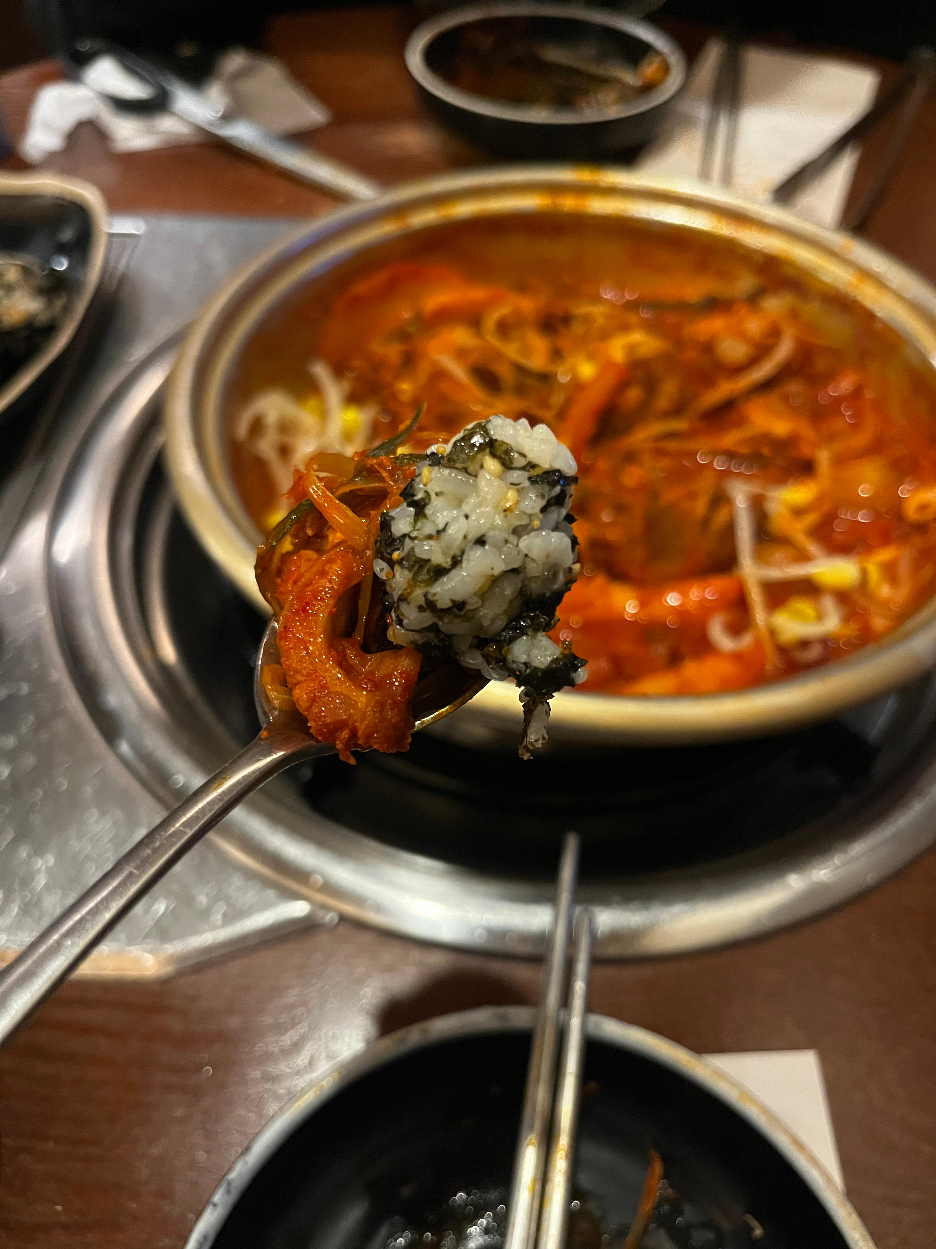 콩나물이랑 고기랑 같이 먹으니 확실히 매운 느낌이 많이 없었어요!