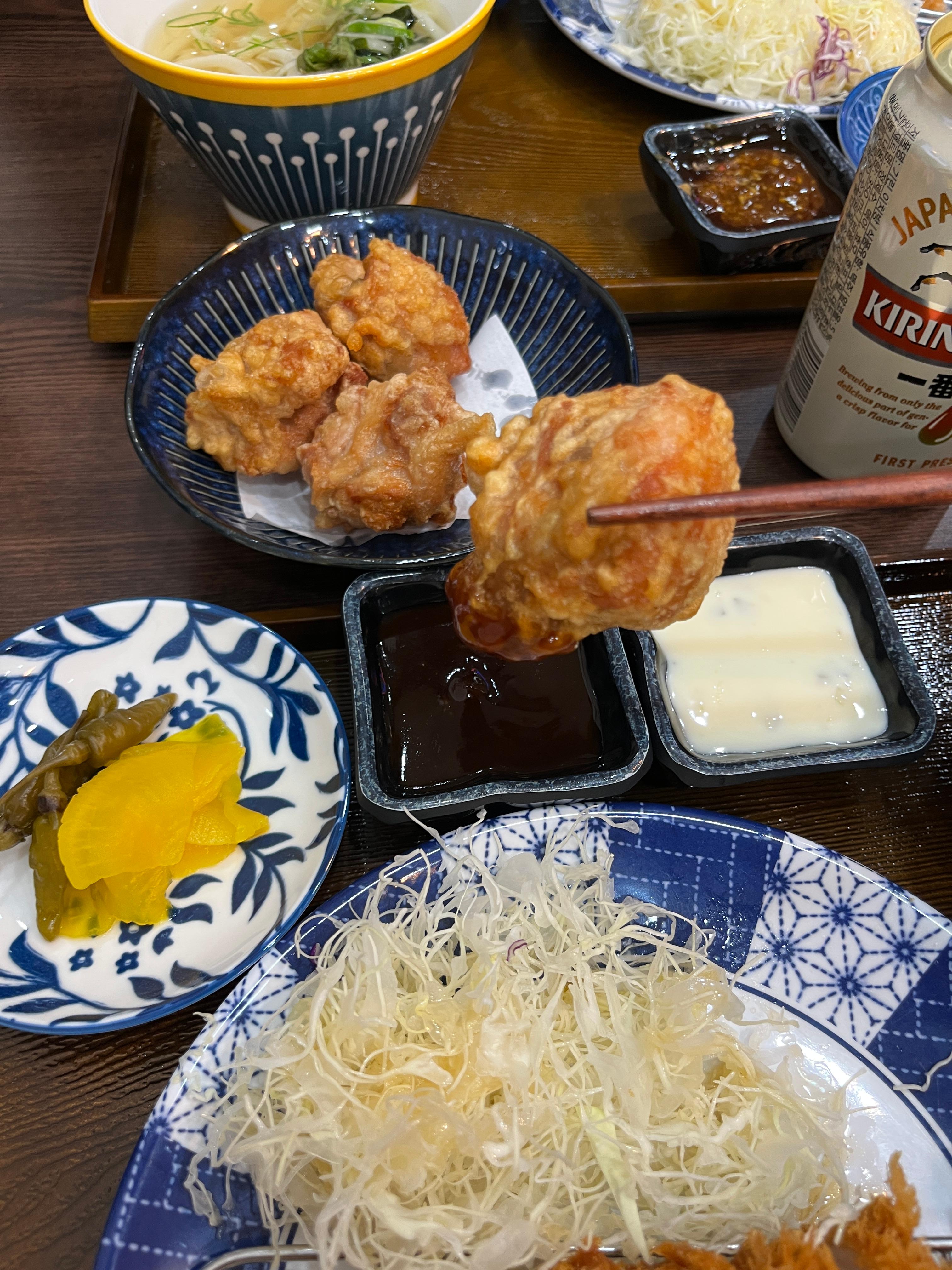 그래서 돈가스 먼저 안 먹고 치킨가라아케를 먼저 먹었어요~