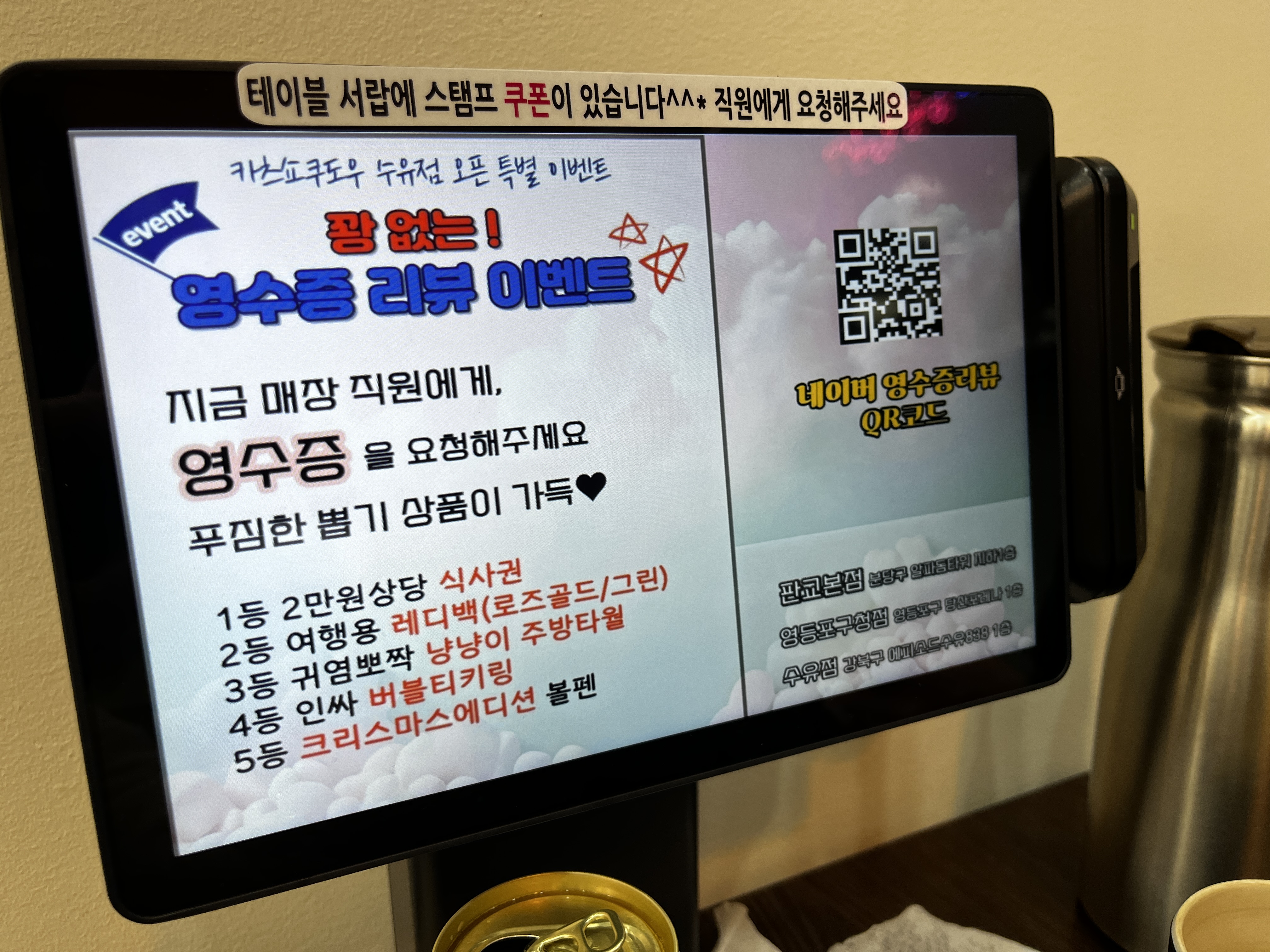 현재 오픈 기념으로 네이버 영수증 리뷰 이벤트를 진행 중인데요.
