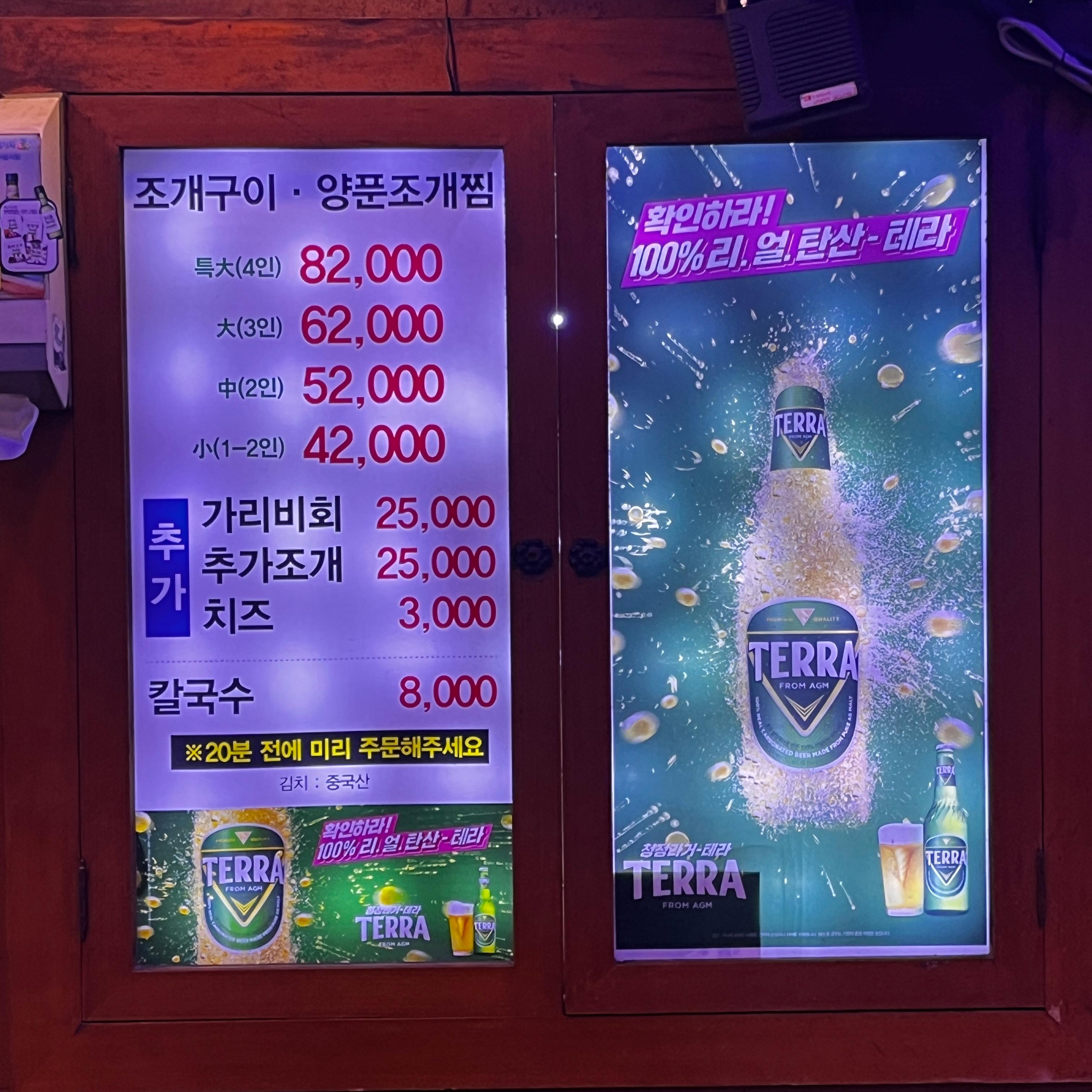 메뉴는 조개구이랑 양푼조개찜으로 구성되어 있는데요.