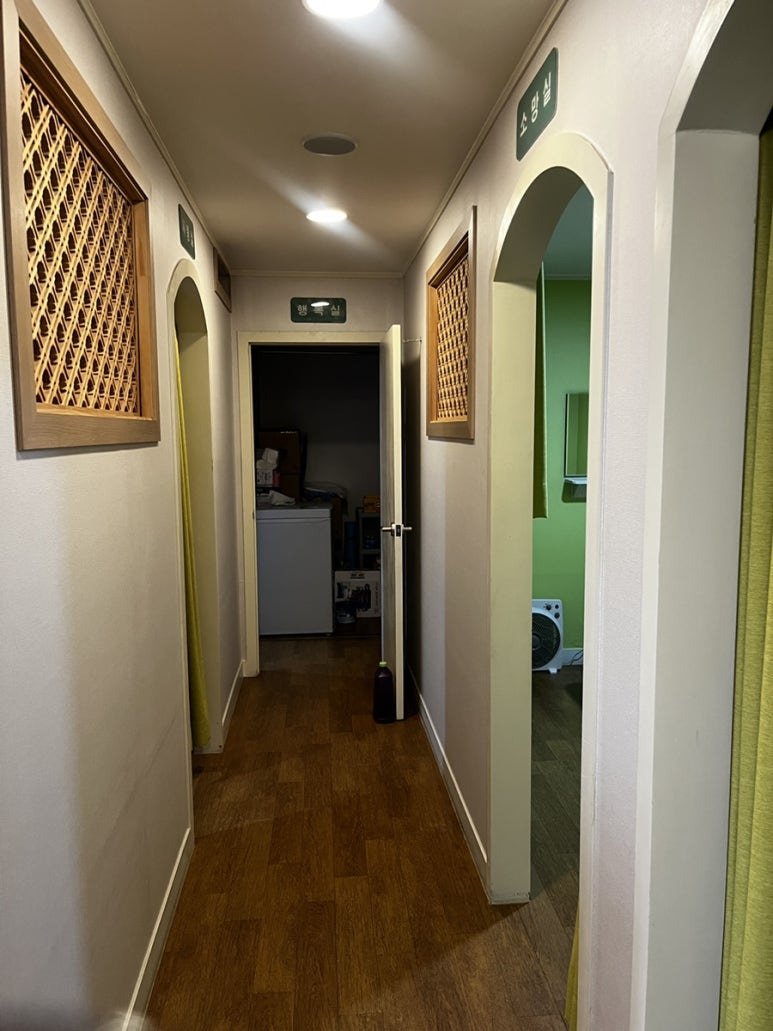 여기에 신발을 벗고 슬리퍼로 갈아 신으신 뒤 마사지를 받으러 가시면 됩니다.