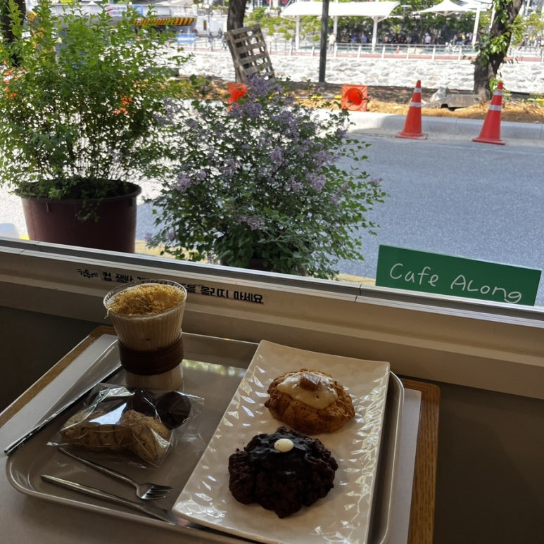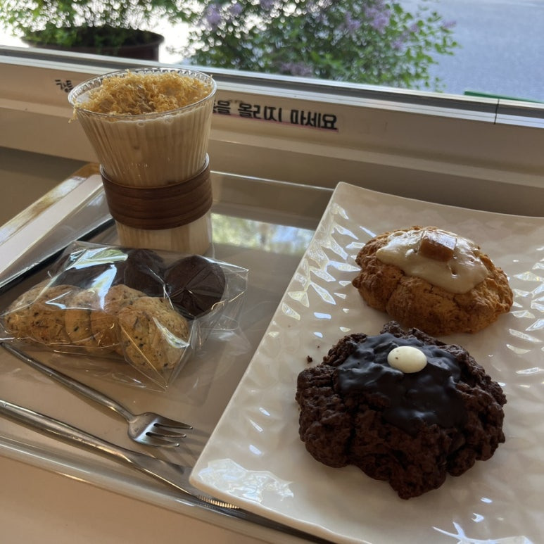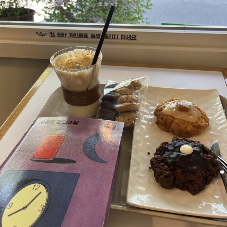 한 시간 정도 카페에 머물며 커피도 마시고, 스콘도 먹고, 책을 읽거나 음악을 들으며 창밖을 바라봤어요.