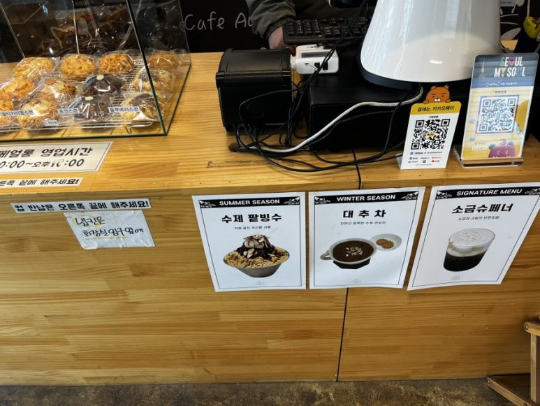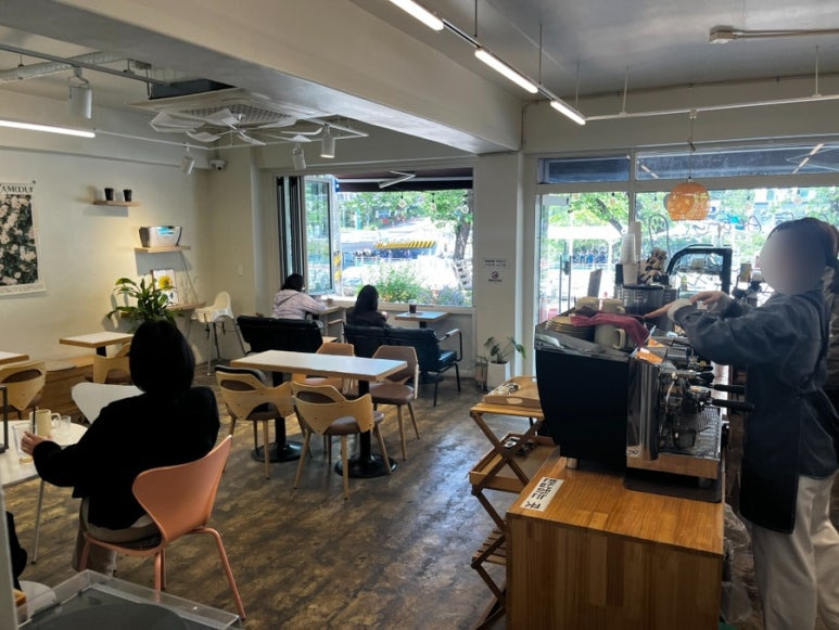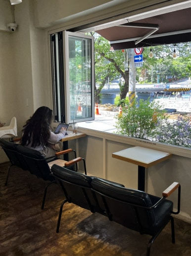 우이천 앞에 위치해 있어서 산책 후 들르는 손님들도 있었고, 창가에 앉아 조용히 바깥 풍경을 감상하거나 패드로 작업하기에도 좋은 공간이었어요.