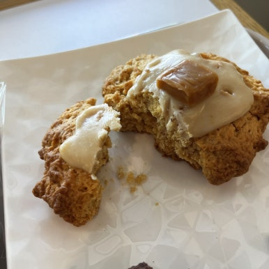 솔티카라멜스콘은 식감이 부드럽고, 짭조름한 캐러멜 맛이 잘 어우러졌어요.