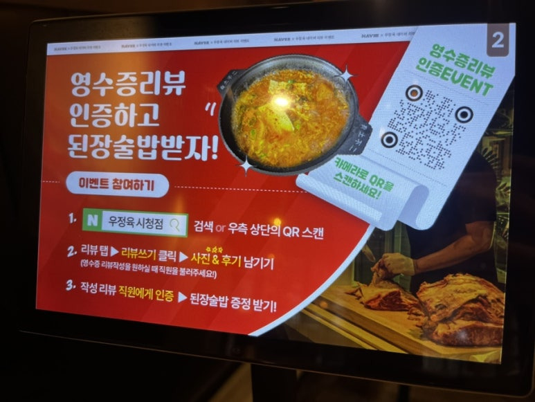 영수증 리뷰 작성 시 사진이랑 후기를 작성하시면 된장술밥(6,000원) 짜리를 증정해 주니! 꼭 참여하세요!ㅎㅎ