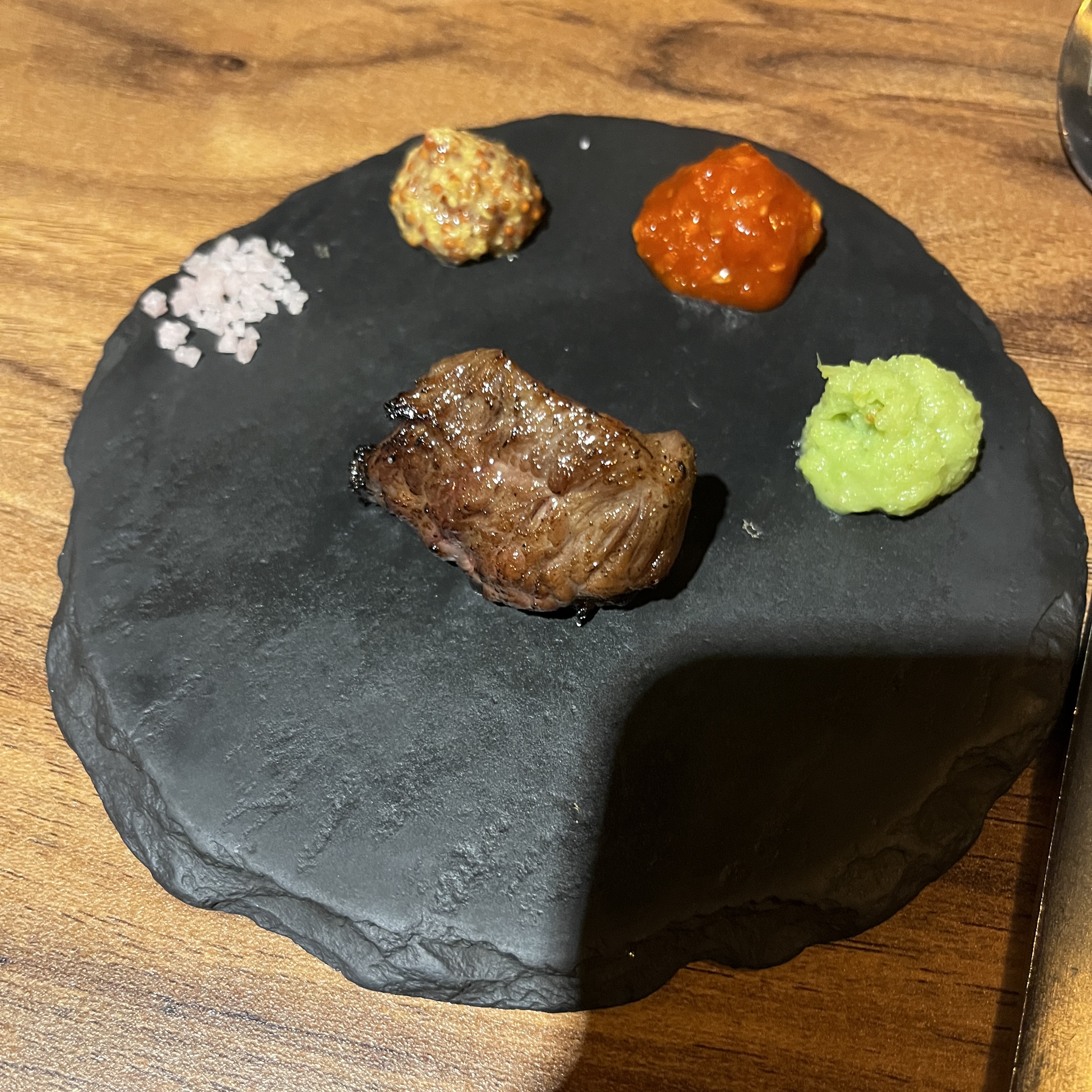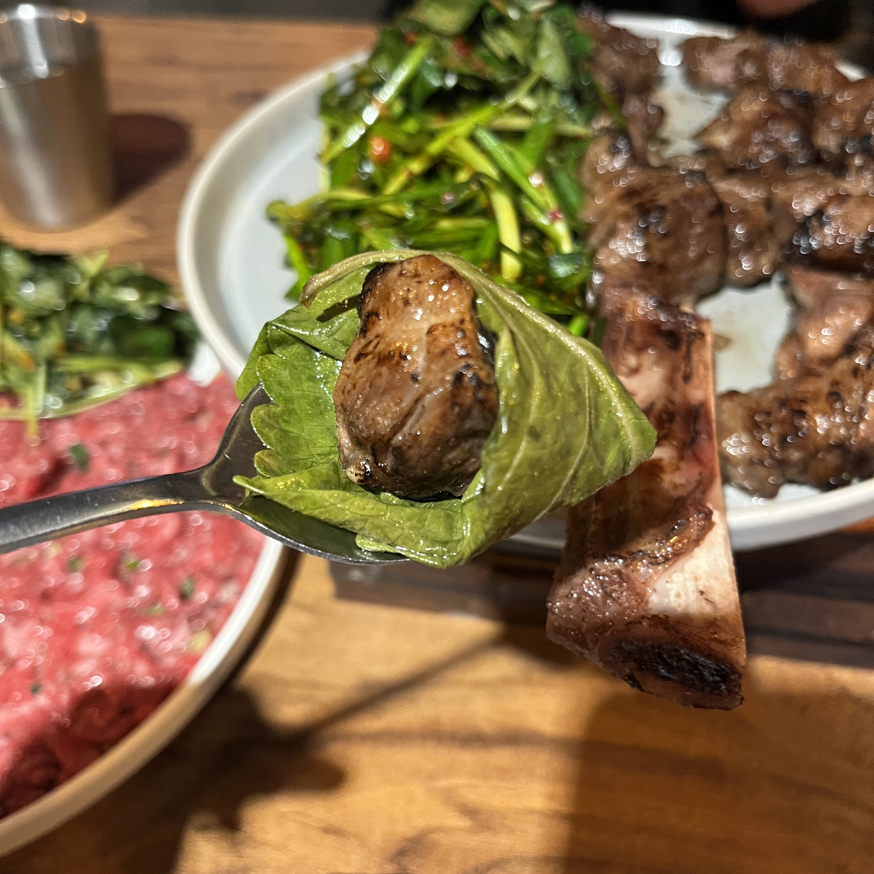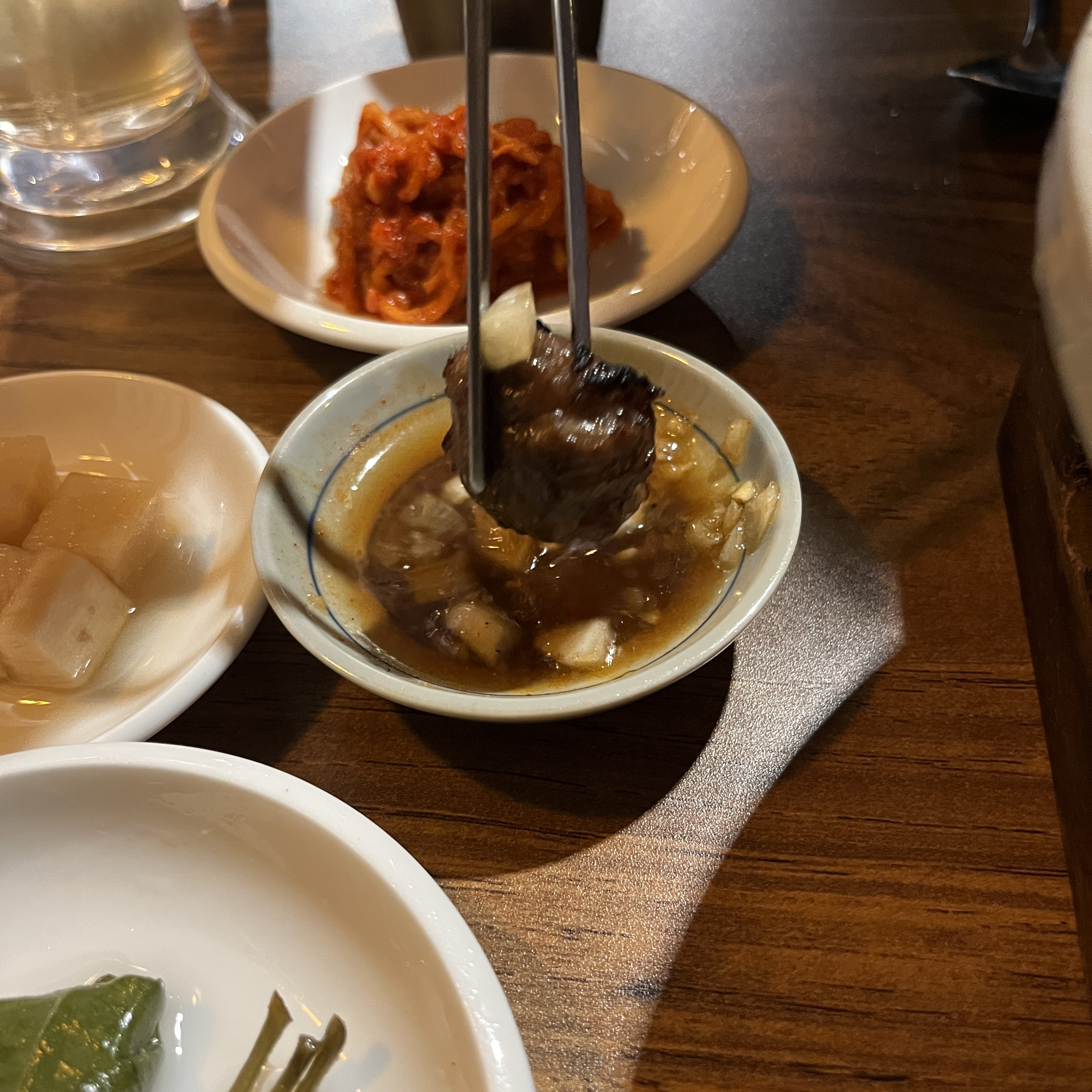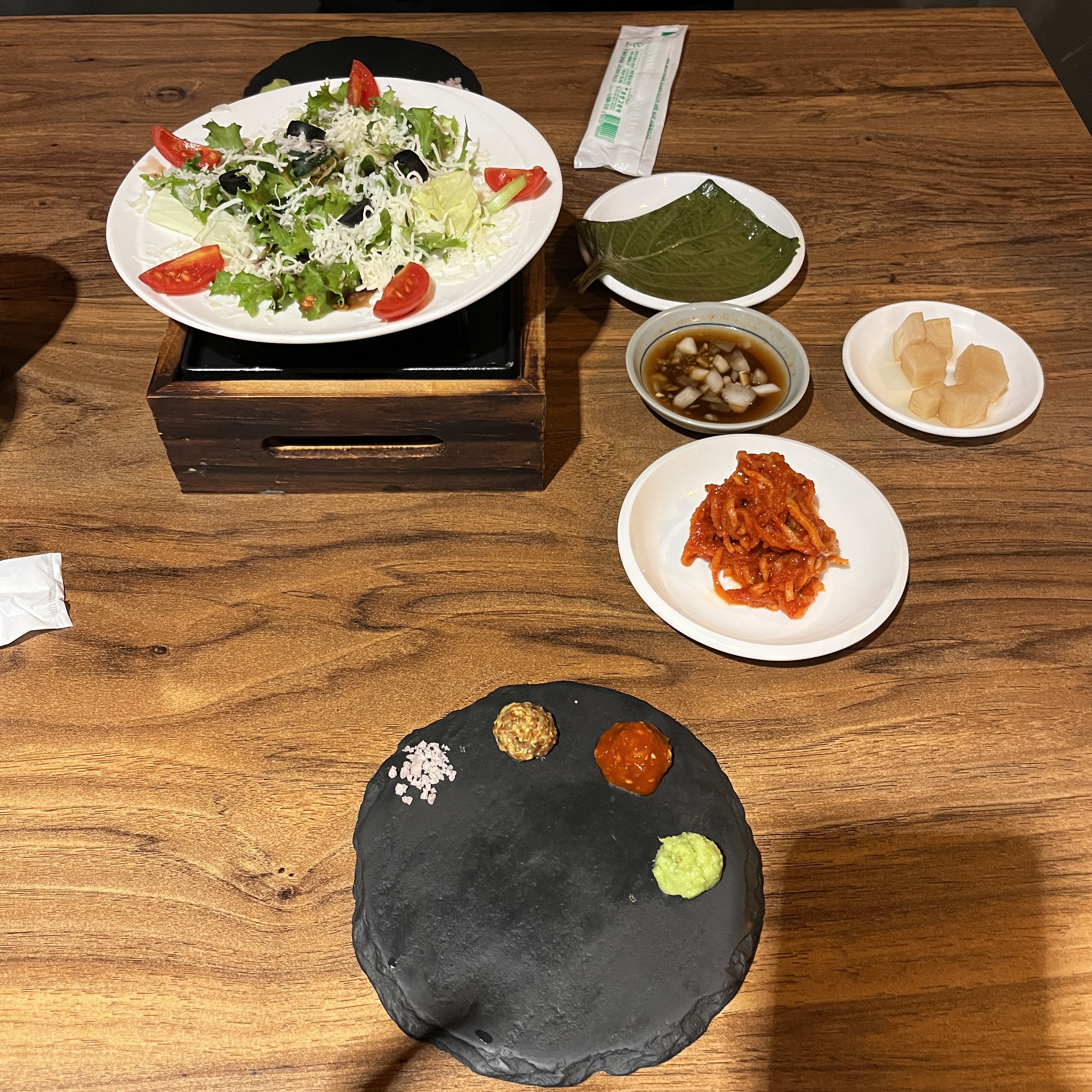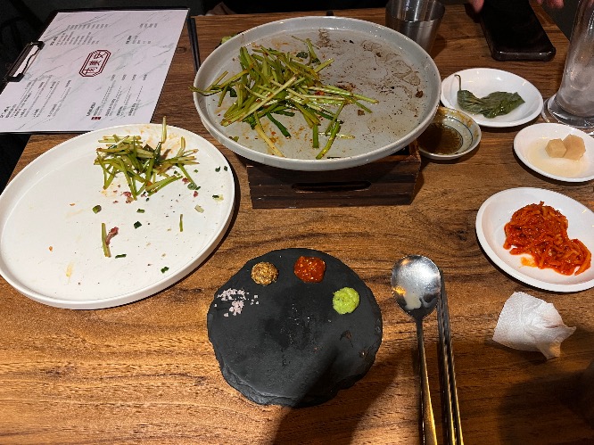 직원분께서 고기를 다 굽고 난 뒤 고기는 처음에 소금에 살짝 찍어서 먼저 먹으라고 했어요.