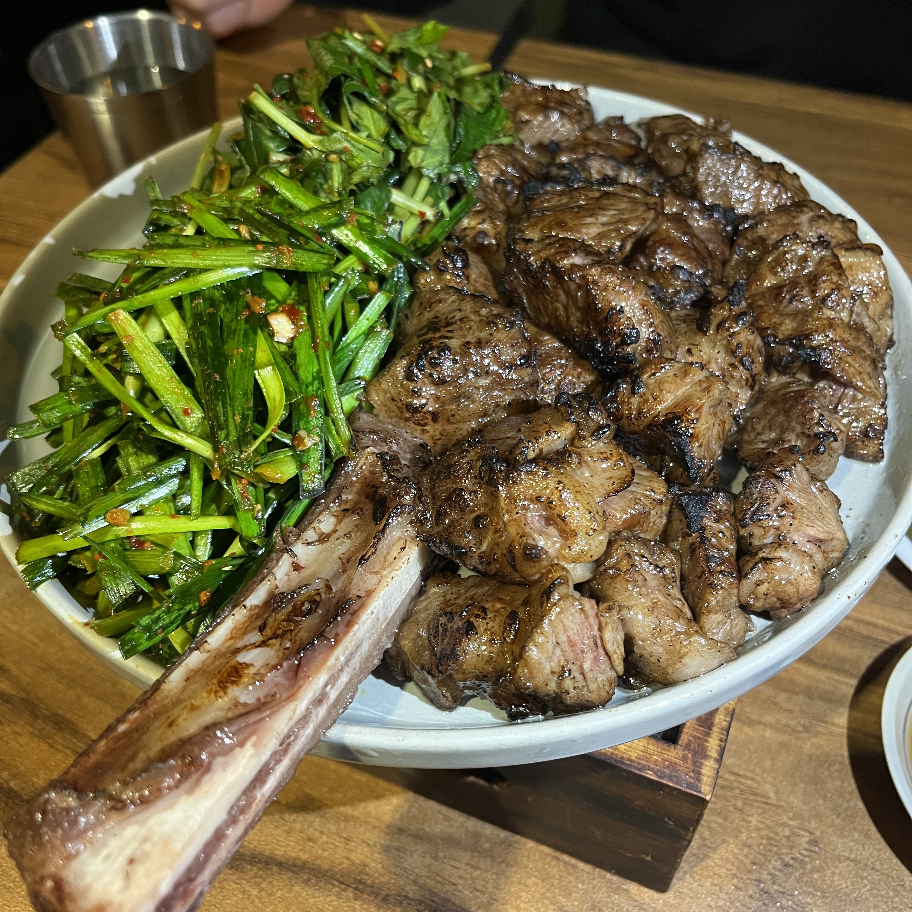 본갈비는 다 구워서 나왔고 눈앞에서 토치로 살짝 더 구워주셨어요!ㅎ