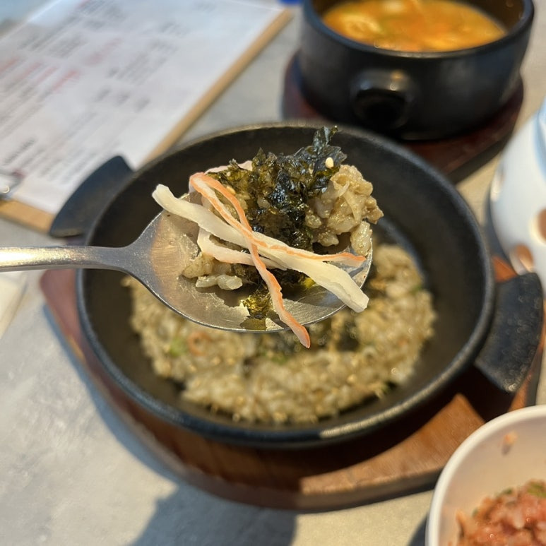 대게내장이 범벅된 볶음밥이라 그런지 한 숟가락 뜨면 향도 너무 좋은 거 같아요!
