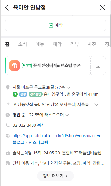 📍 캐치테이블 : 육미안 연남점