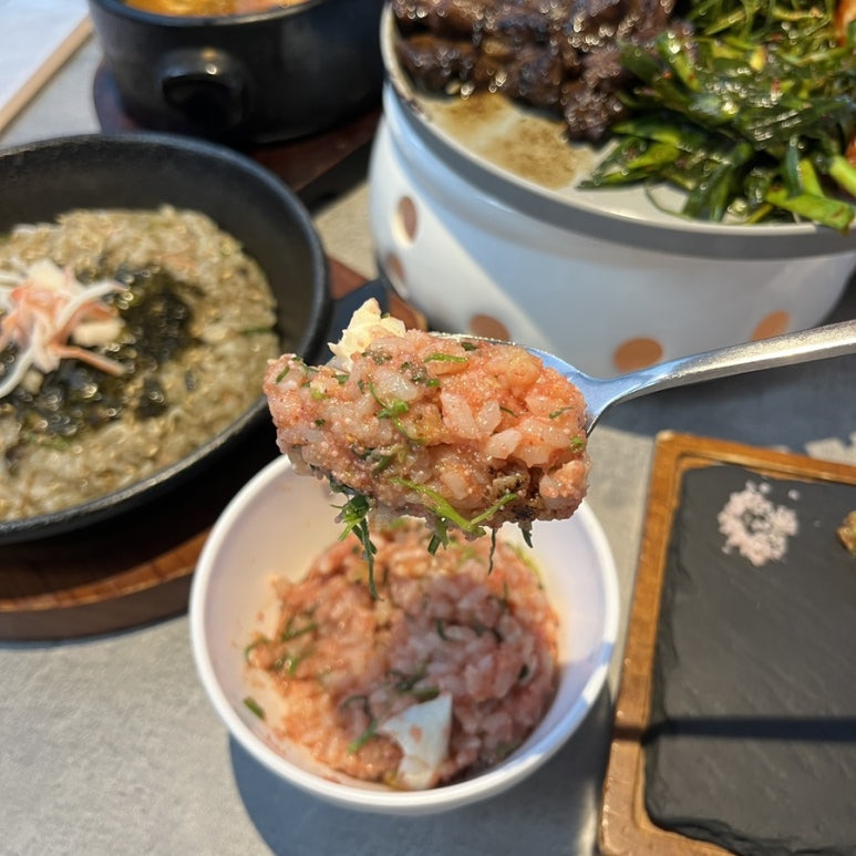 그리고 한참 먹다가 숙성 명란 솥밥 한 숟가락 먹었는데요.
