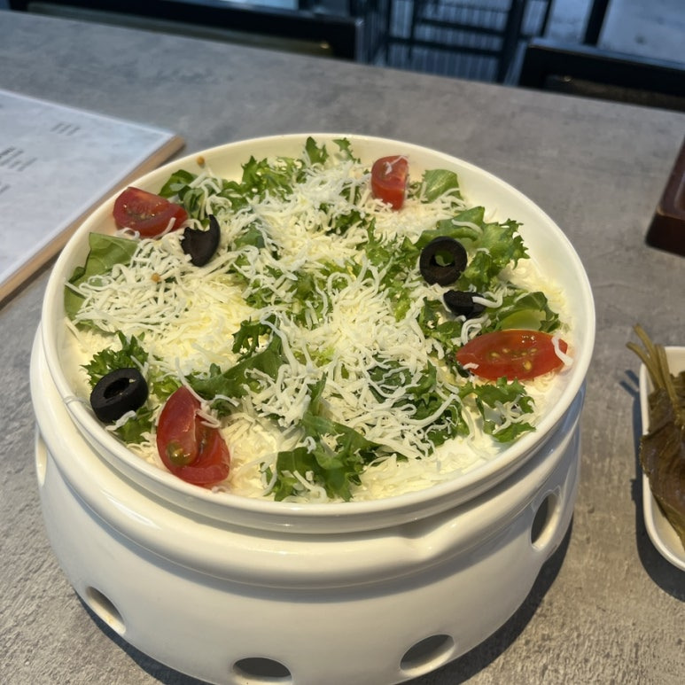 샐러드에 소스가 뿌려져 있지 않지만 치즈로 인해서 소스 없이도 먹기 너무 좋은 거 같아요!