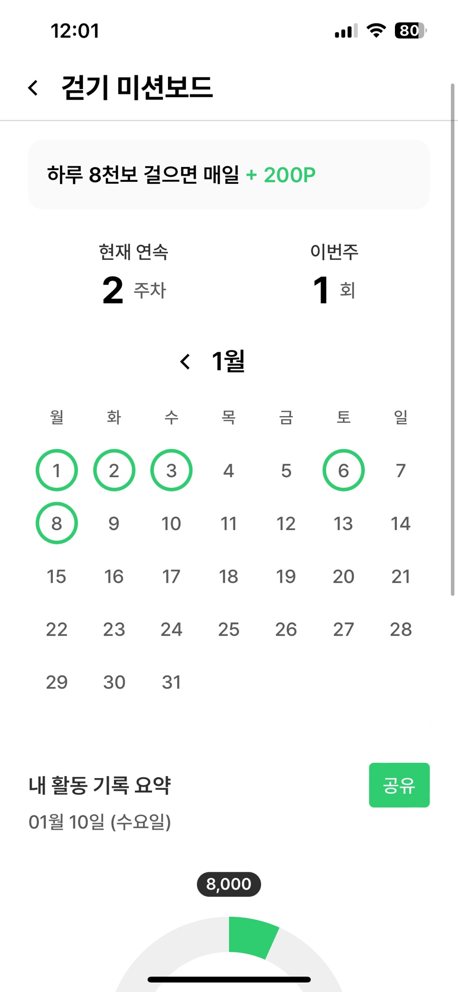1. 생각보다 돈이 많이 들어온다. 앱 출석을 꾸준히 하고 실천목표 달성, 식단 기록은 사실 쉬우니 활동 포인트를 다 못 채워도 돈이 어느 정도는 들어온다. 따라서 하루 8천보를 다 못 걸어도 충분히 포인트를 지급받을 수 있다. 개인적으로 많이들 하는 캐시 워크보다 돈을 더 많이 벌고 만보가 아닌 8천 보기에 크게 부담이 없다.