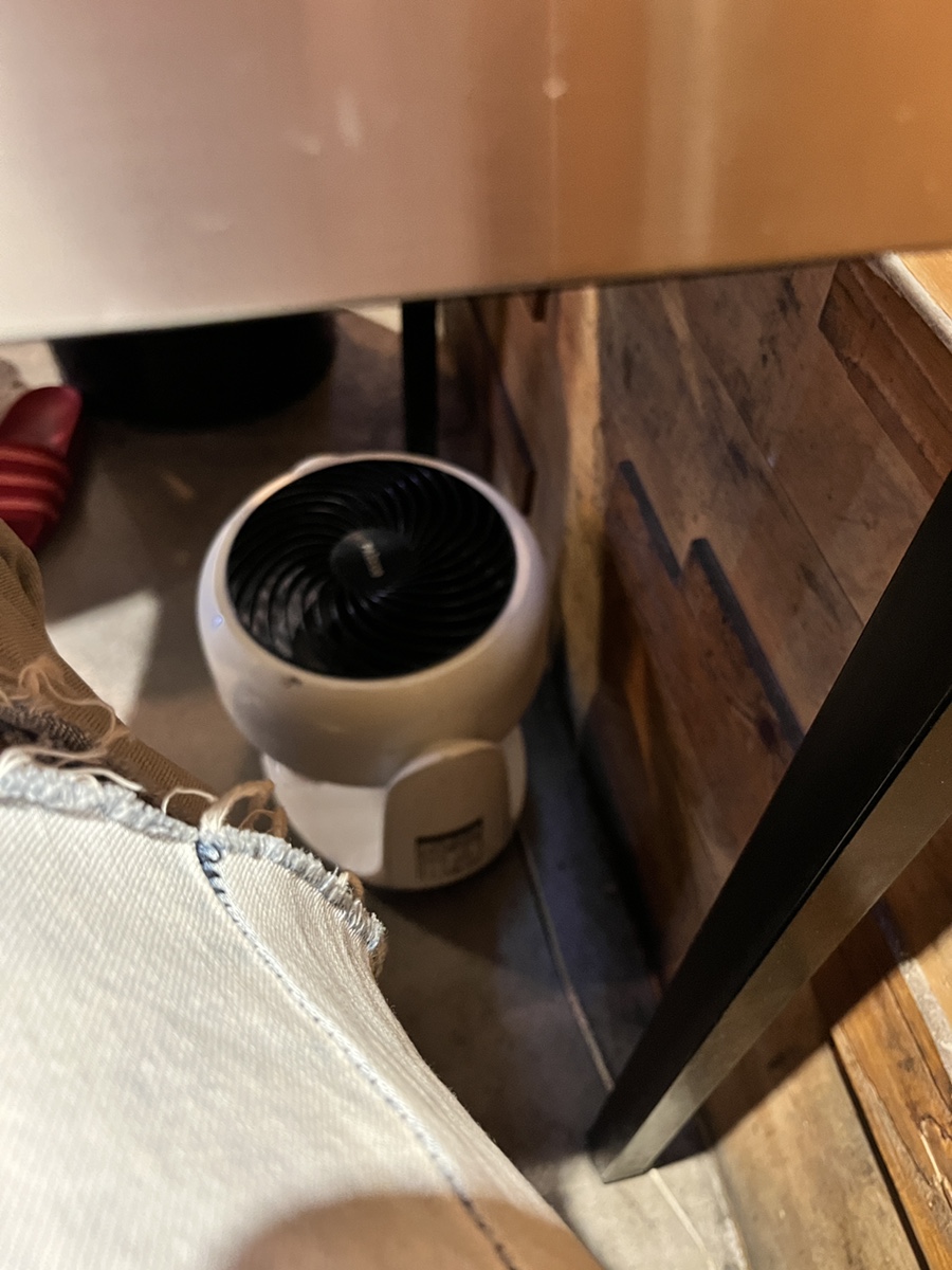 어쩐지~ 위에 에어컨이 틀어져있는데 밑에 선풍기가 돌아가서 그런지 확실히 하나도 안 더웠어요!