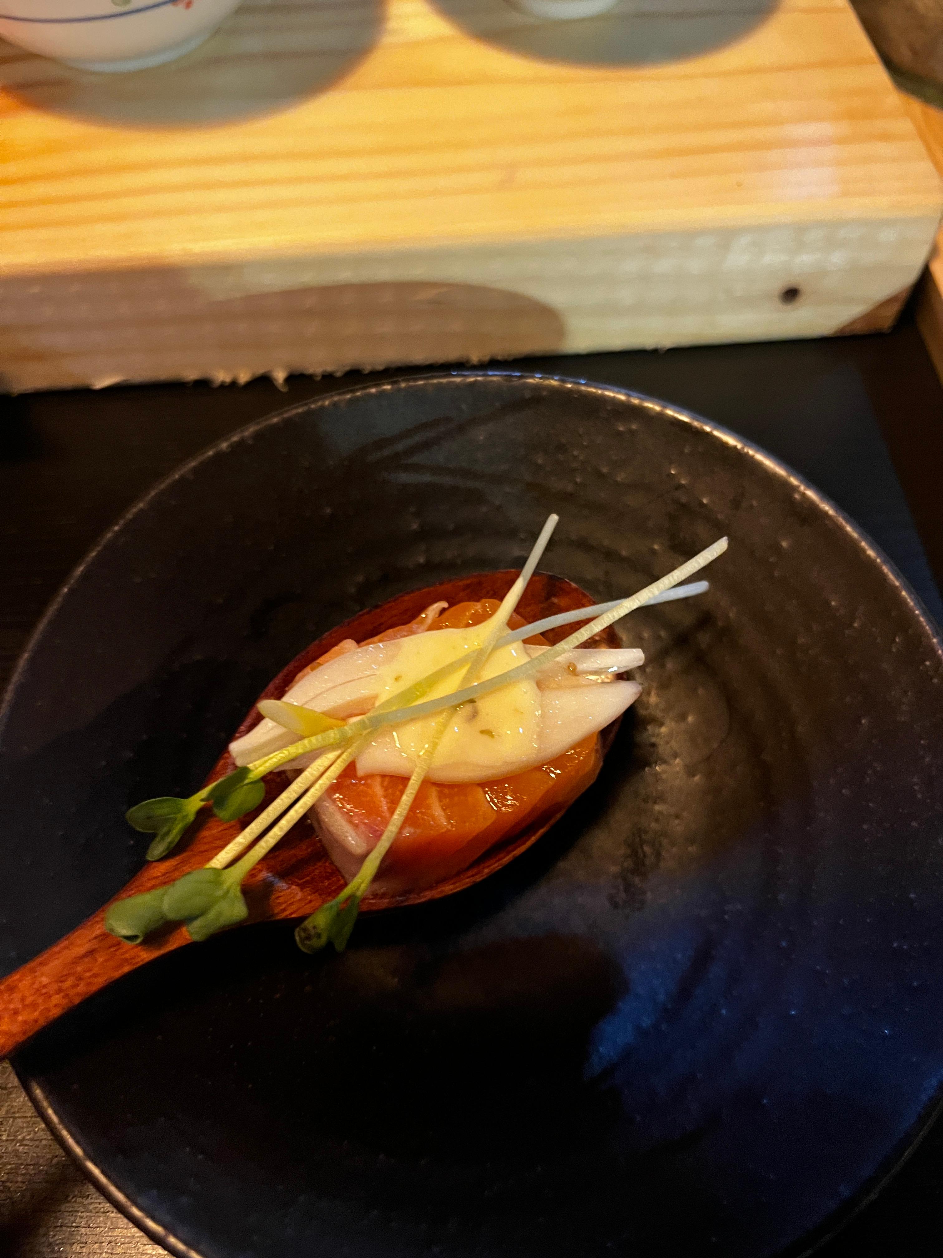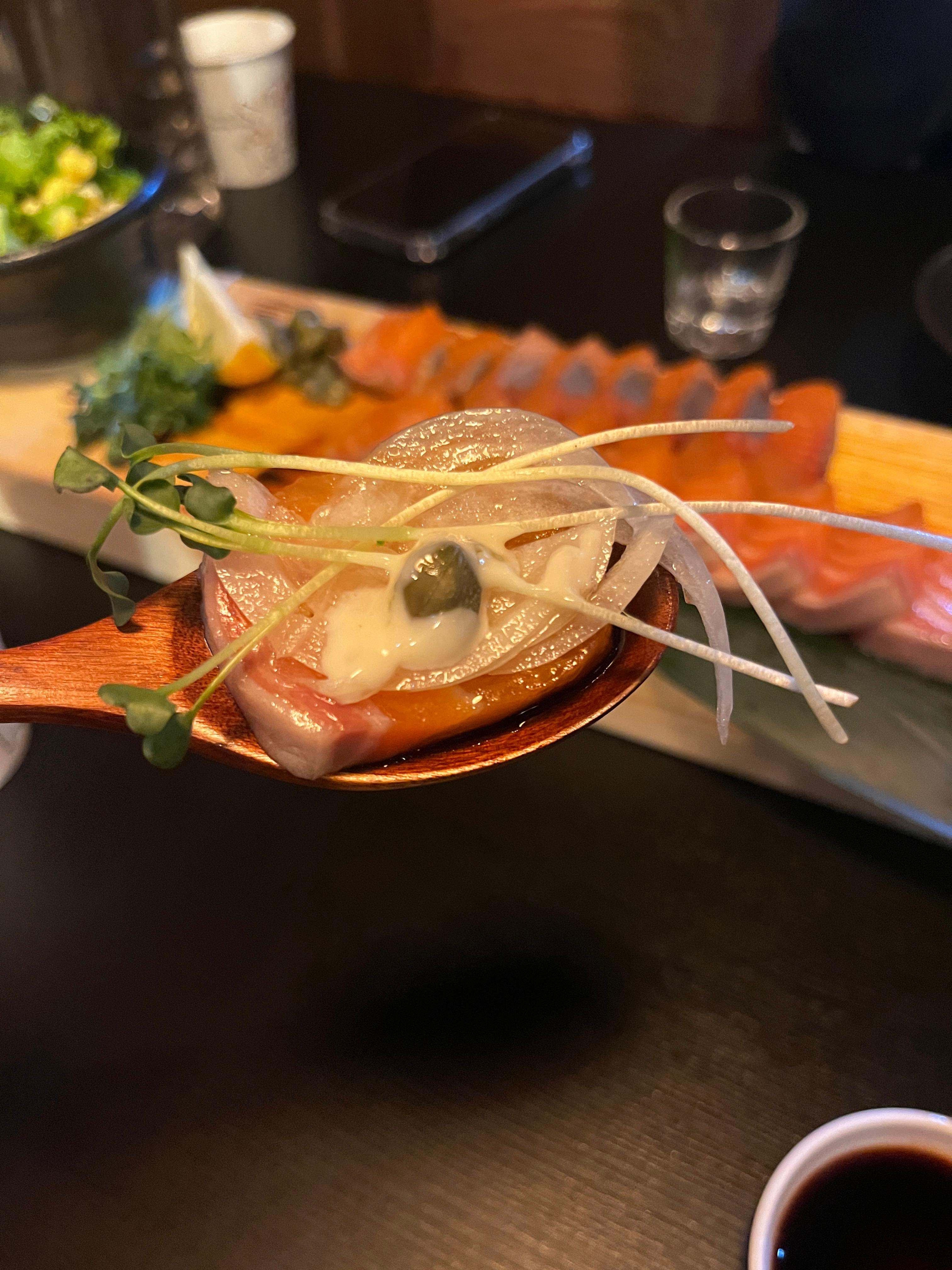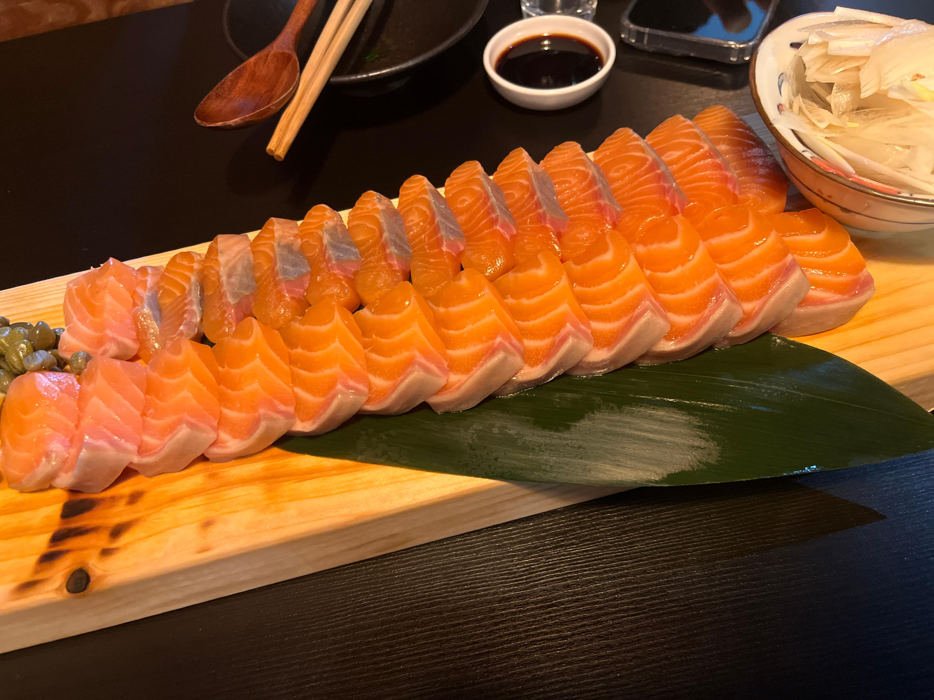 네이버 영수증 리뷰를 보니 많은 분들이 생연어 사시미를 먹길래 저희도 생연어사시미(32,000원)를 주문했어요! 그리고 우동(8,000원) 그리고 소주(5,000원) 이렇게 주문했습니다.