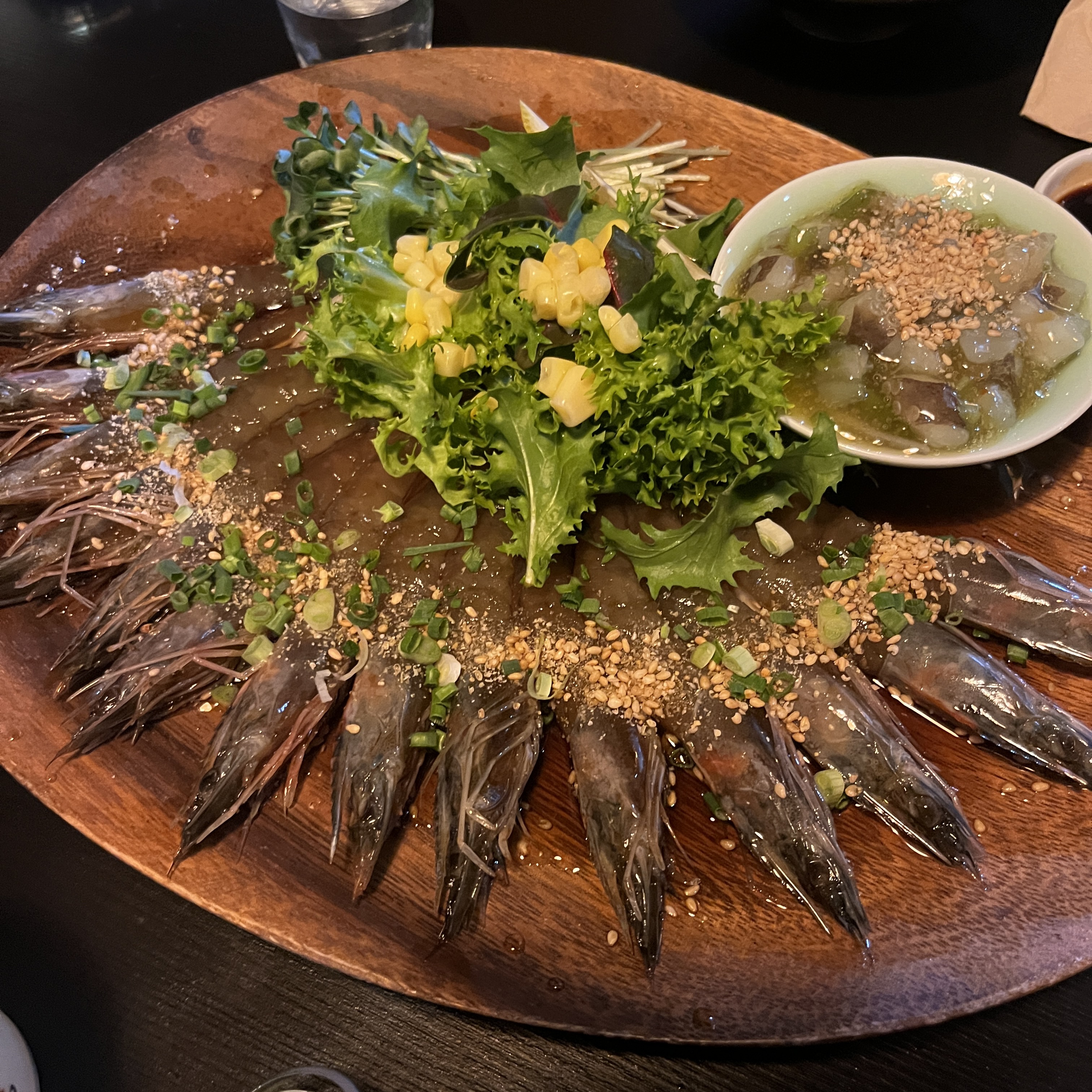 새우만 나오는 게 아니라 낙지도 살짝 올려주셨는데~ㅎㅎ 덕분에 정말 술이 쭉쭉 들어갔어요!